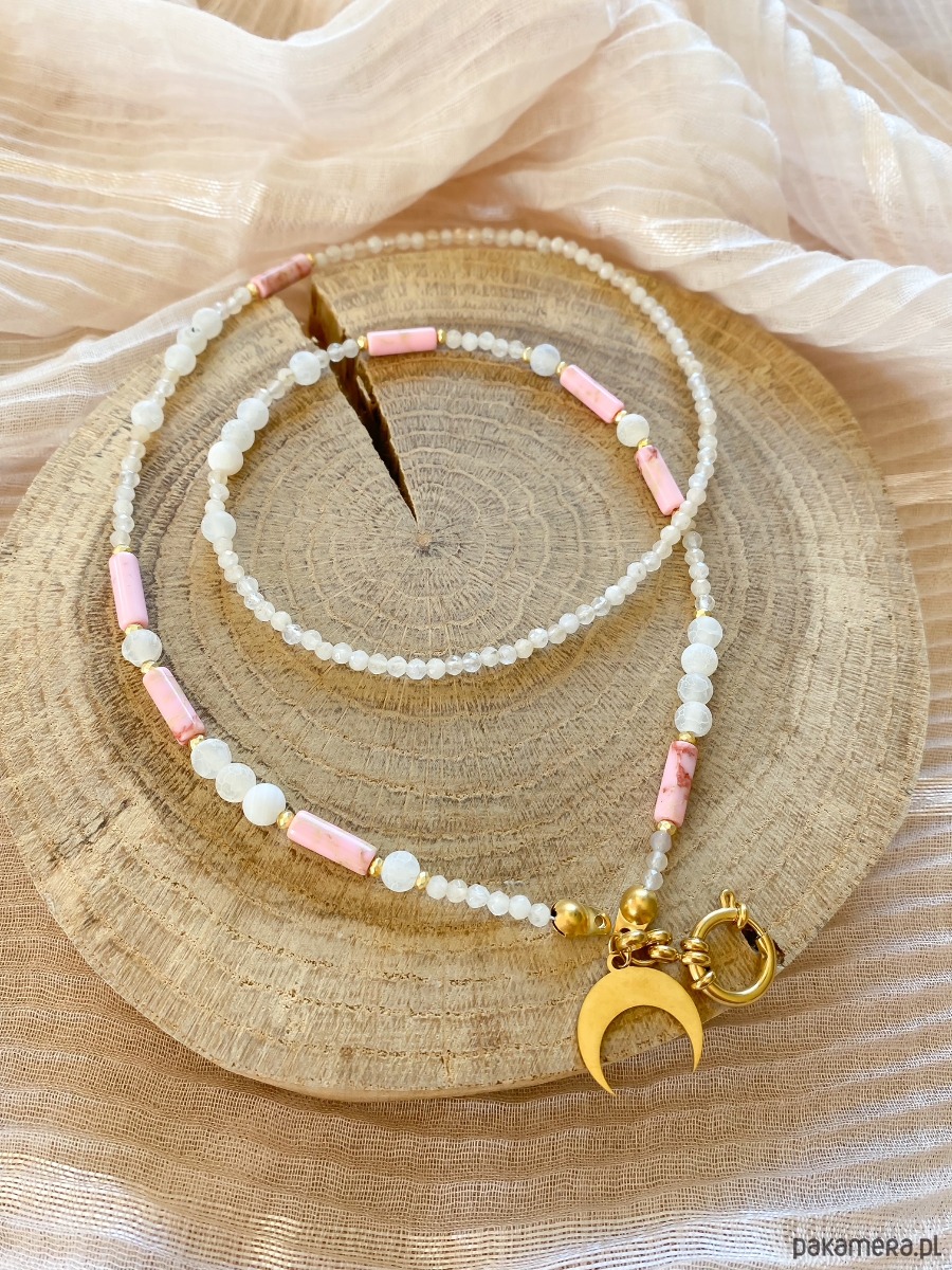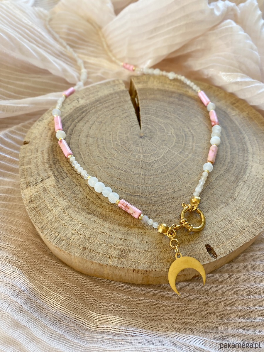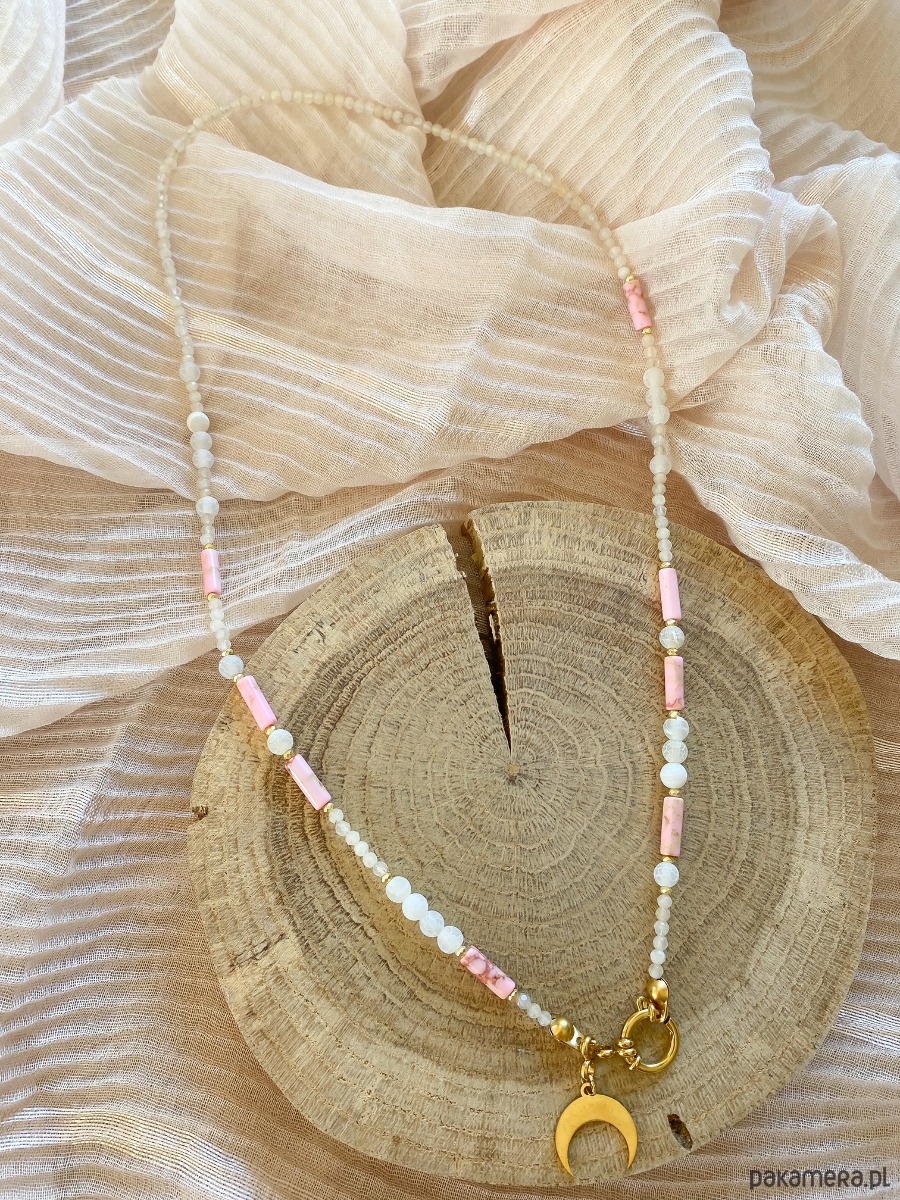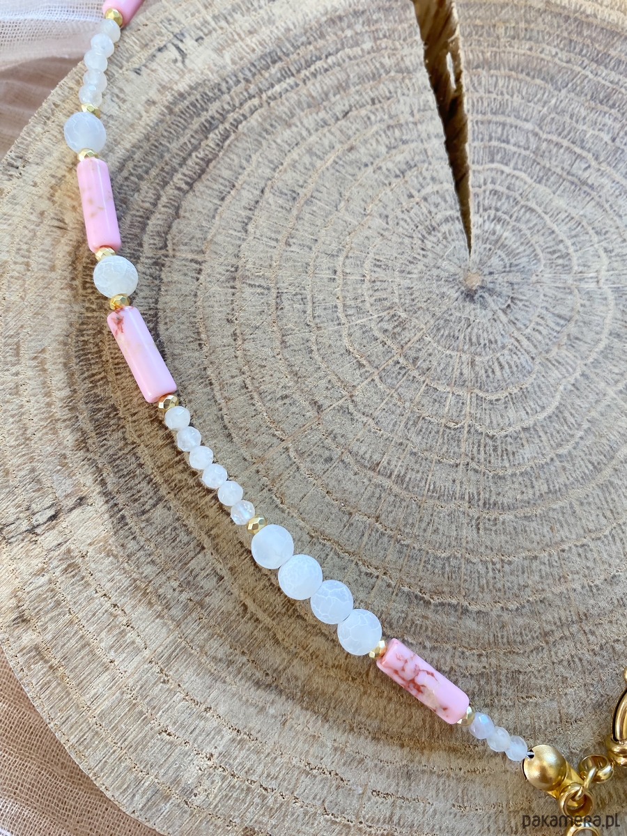 Naszyjnik stworzony z wyjątkowych kamieni naturalnych w biało różowej kolorystyce z klasycznym zapięciem typu federing.