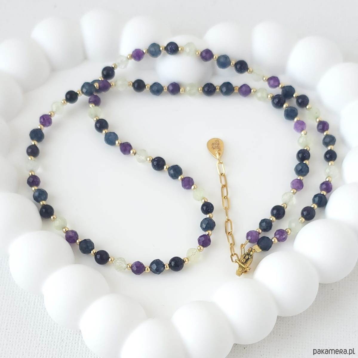 Naszyjnik z kamieni naturalnych: chalcedon, prehnit, ametyst, noc kairu
