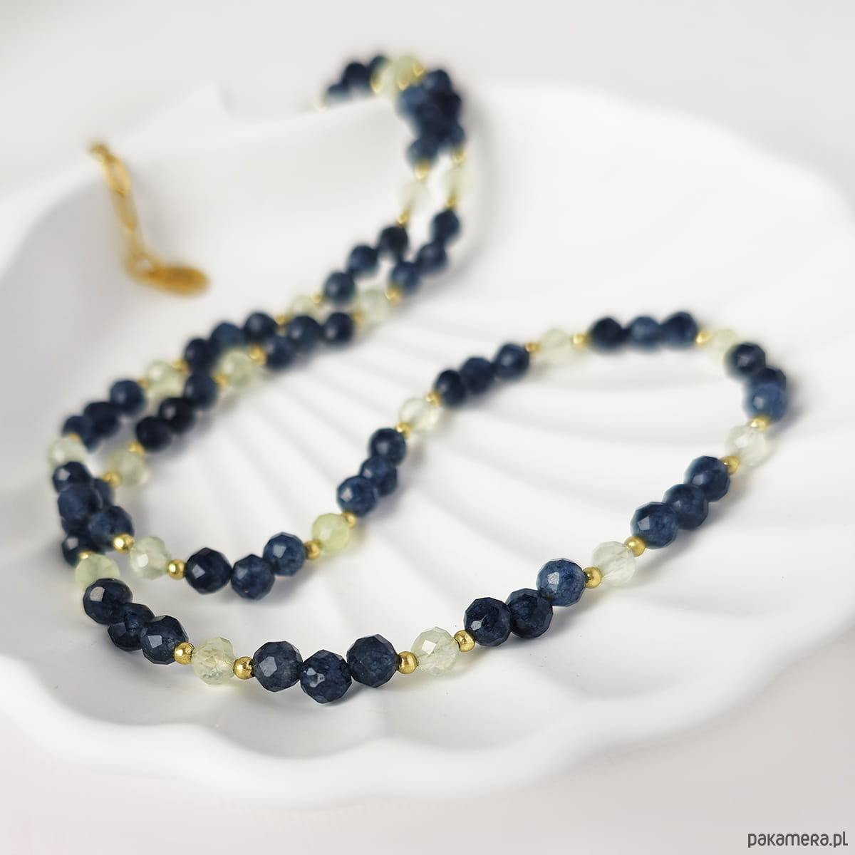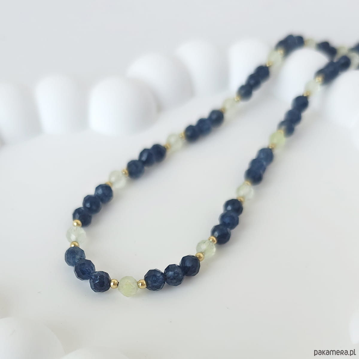 Naszyjnik z kamieni naturalnych: chalcedon, prehnit