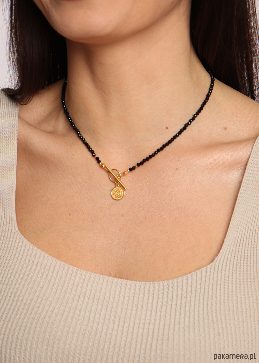 Przepiękne, fasetowane kamienie cudownie mienią się w blasku słońca, a sam naszyjnik na dekolcie wygląda niezwykle elegancko. Będzie idealny dla osób ceniących prostotę i ciemne, klasyczne kolory.