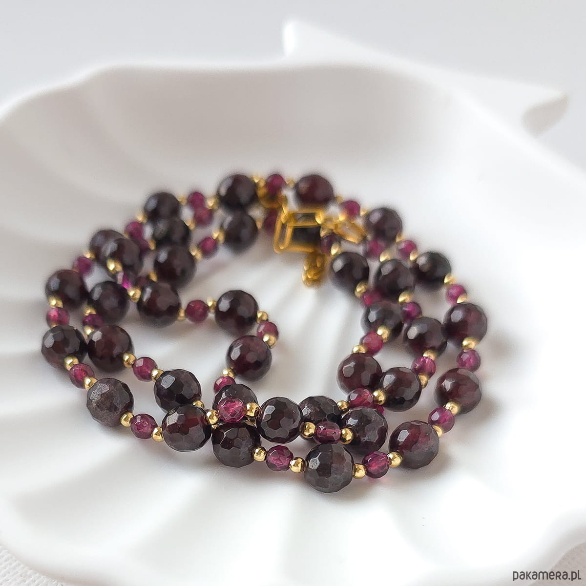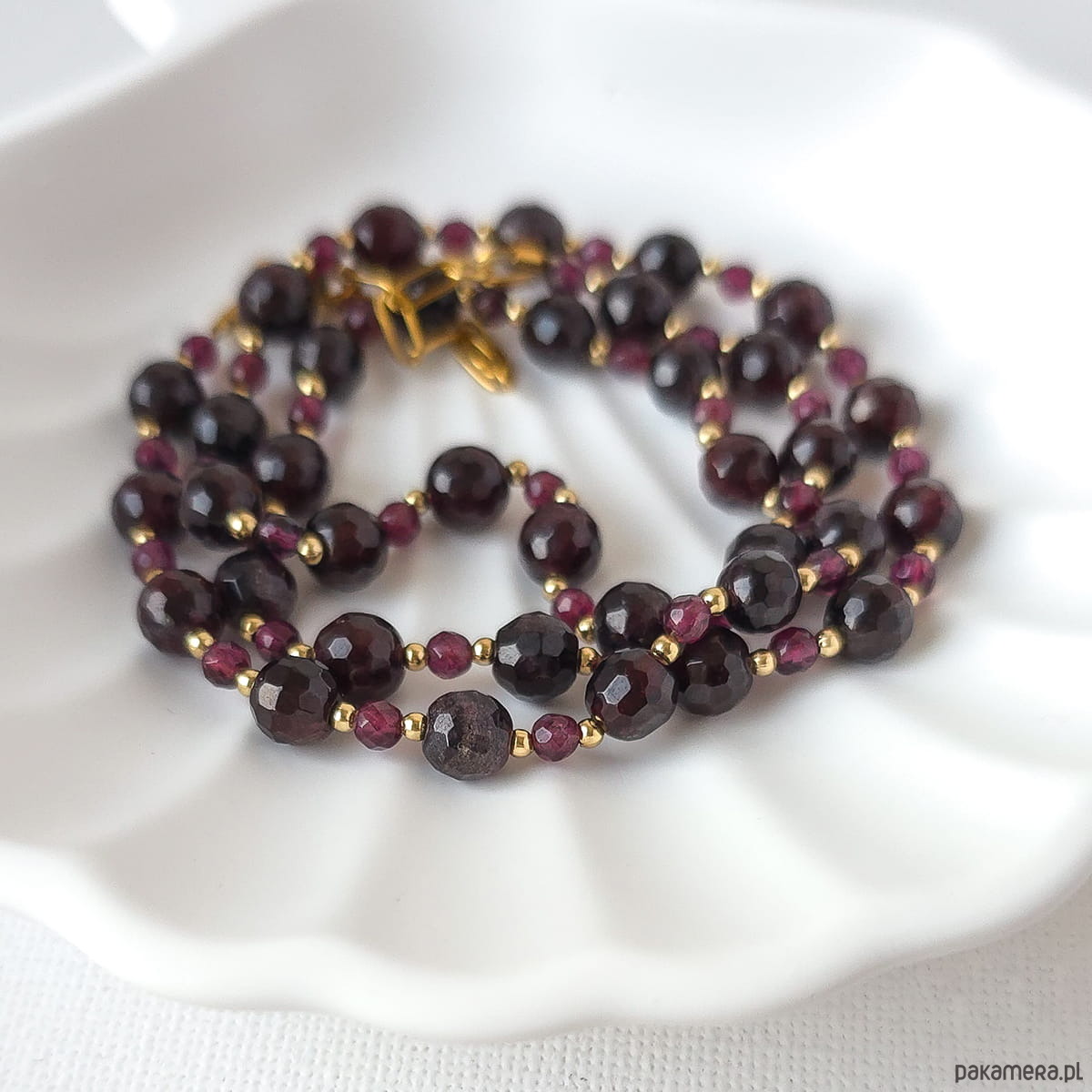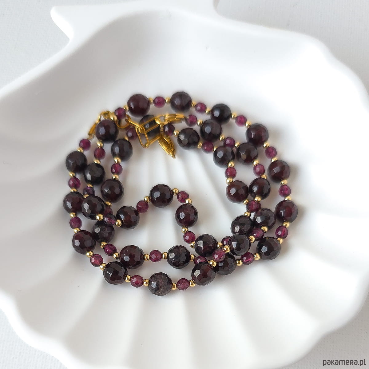Granat - kamień odwagi. Dodaje pewności siebie i motywacji do działania. Przyciąga pozytywne zmiany, wspiera w osiąganiu celów oraz pomaga przezwyciężać trudności. Symbol miłości i wierności.