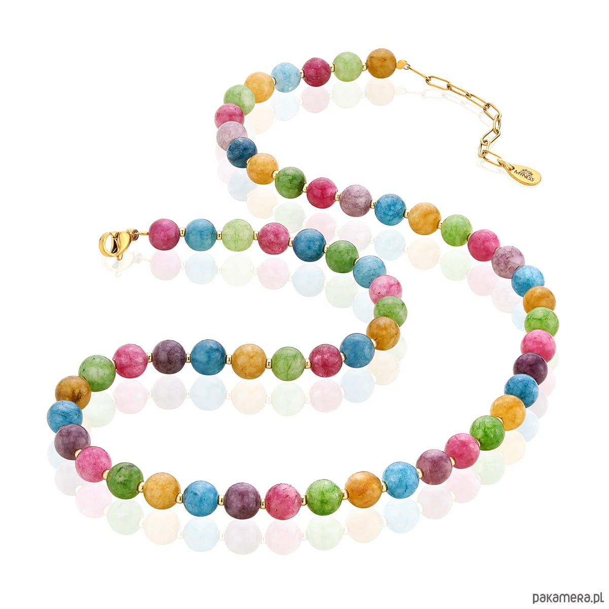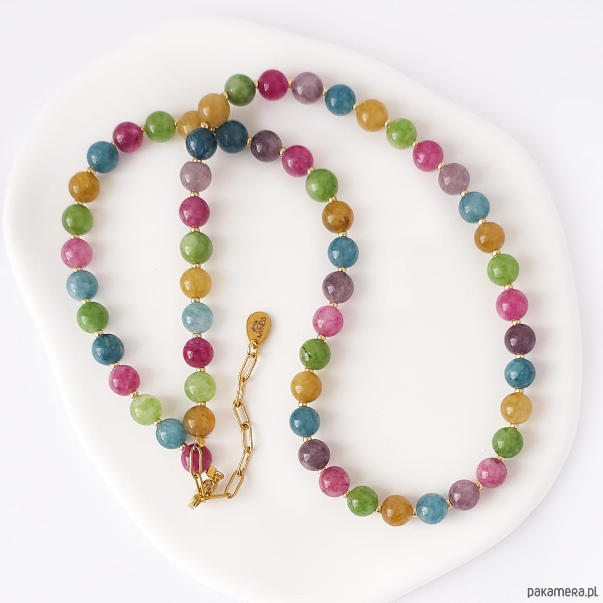 Elegancki i niepowtarzalny naszyjnik wykonany z naturalnych kamieni szlachetnych i półszlachetnych, wykończony elementami ze stali szlachetnej.