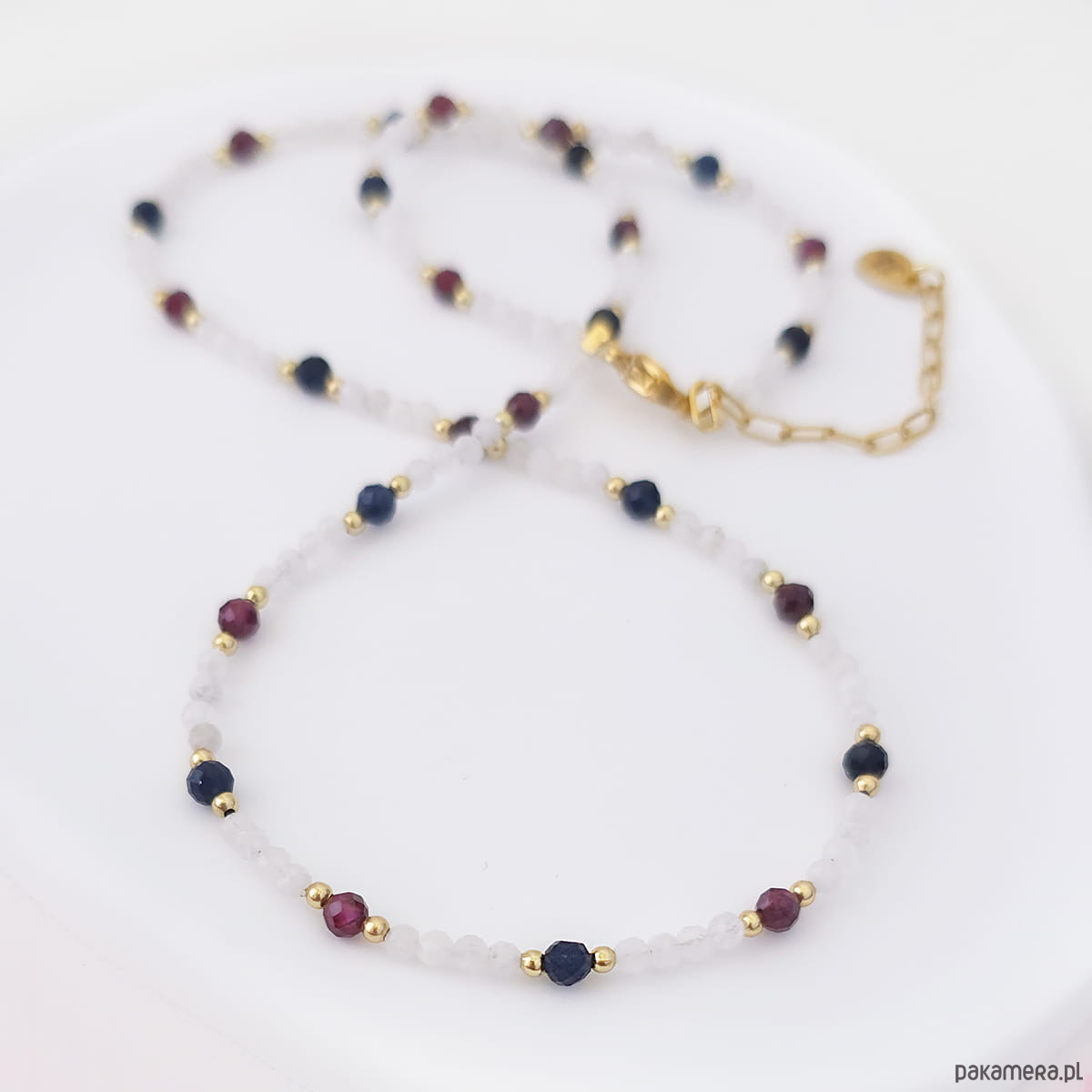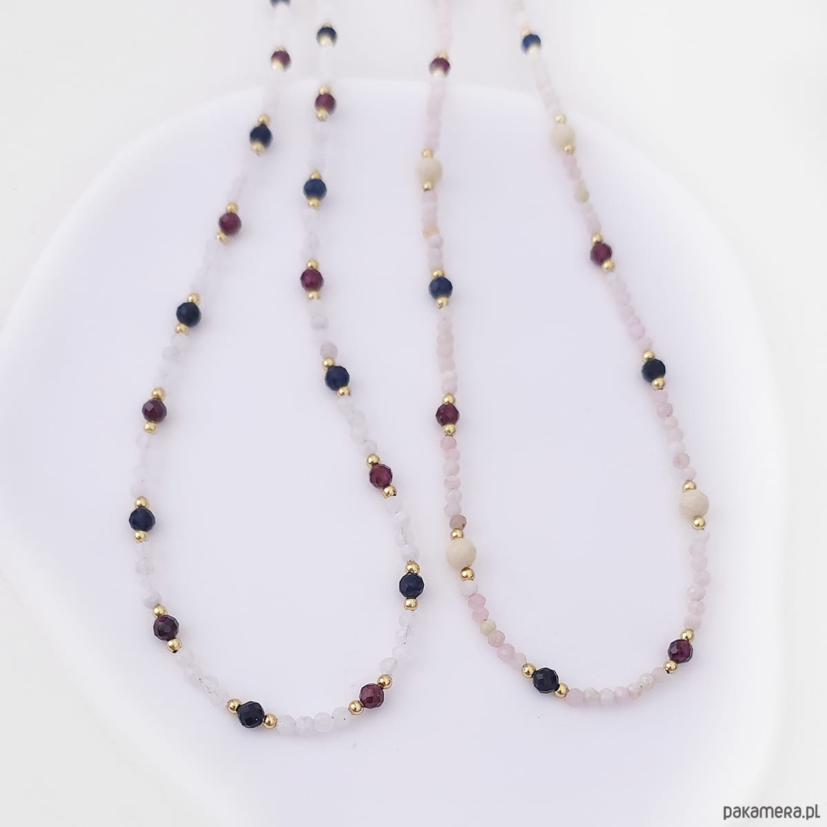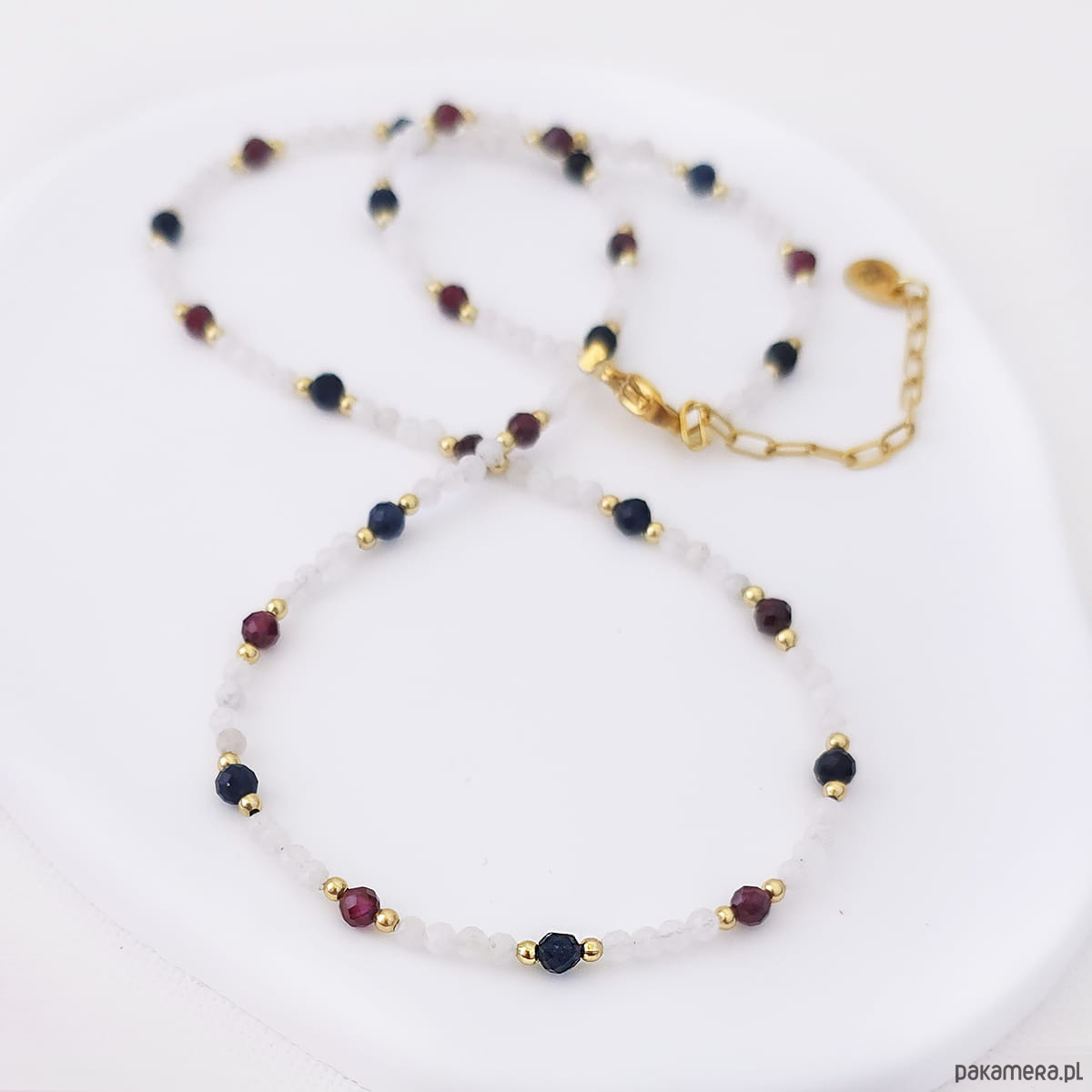 Naszyjnik z kamieni naturalnych: kamień księżycowy, chalcedon, granat