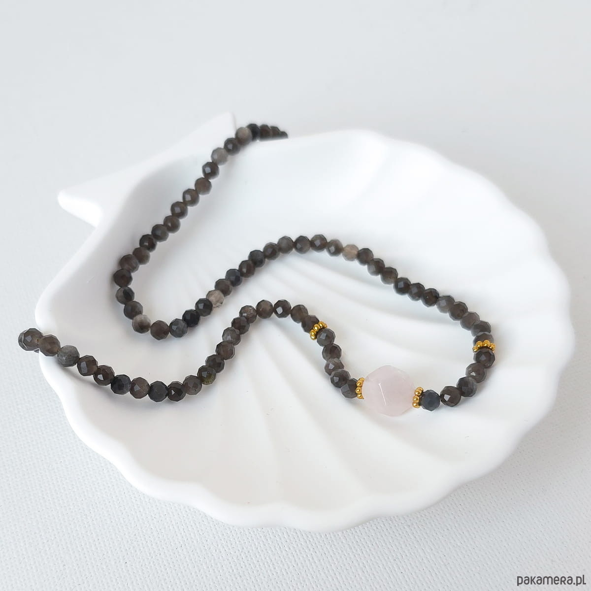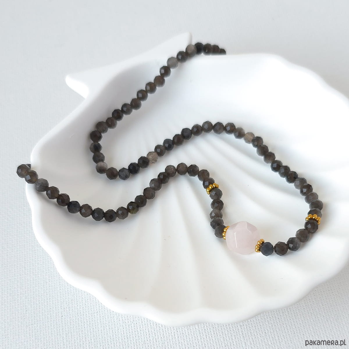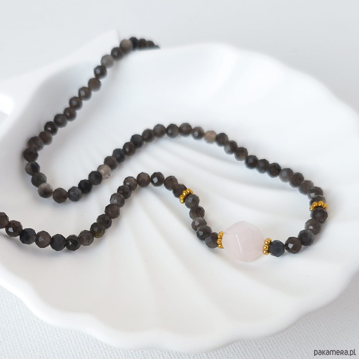 Naszyjnik z kamieni naturalnych: kwarc różowy, obsydian