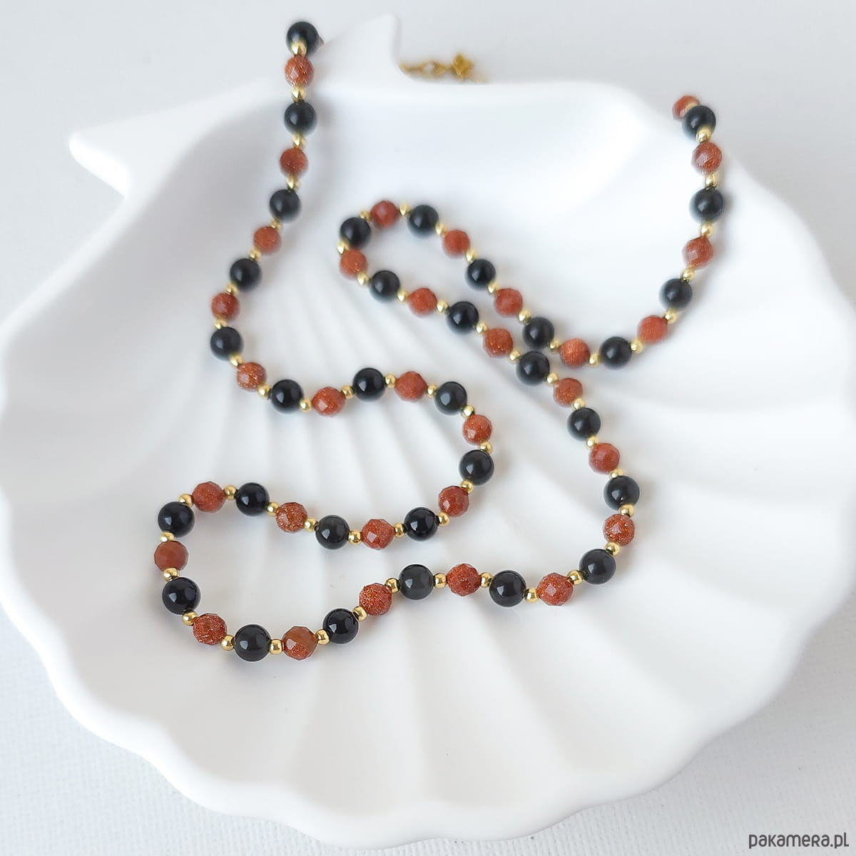 Naszyjnik z kamieni naturalnych: onyks, piasek pustyni