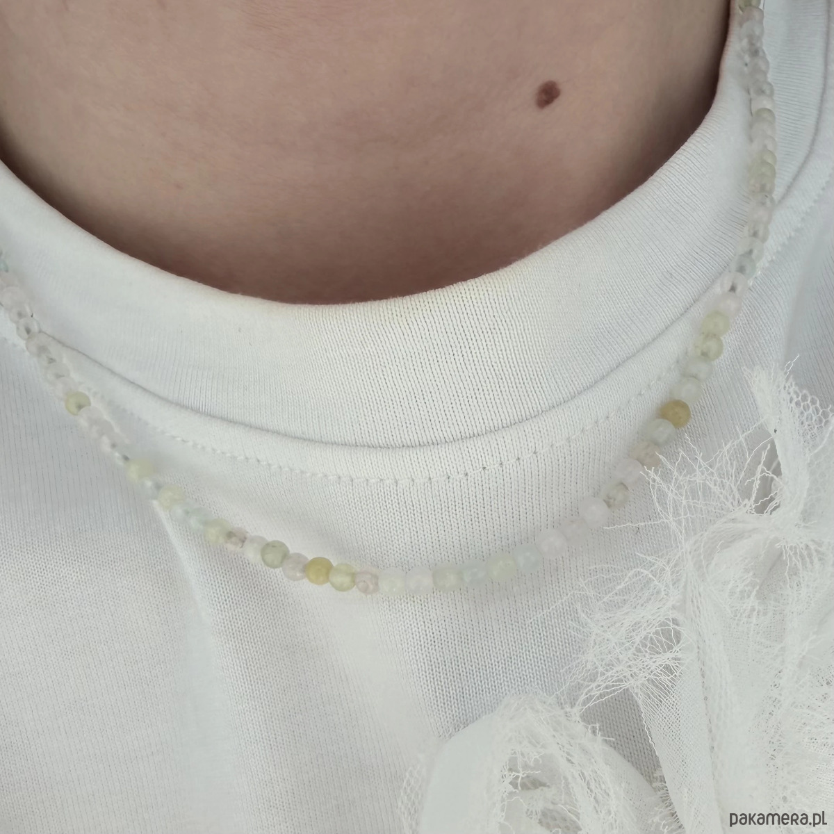 Morganit wyróżnia się miękką, pastelową kolorystyką, która pięknie wpisuje się w estetykę delikatnej i eleganckiej biżuterii. To model, który subtelnie podkreśla szyję i dodaje stylizacji świeżości oraz naturalnego uroku. Choker Pastelowy No.2 świetnie sprawdzi się zarówno na co dzień, jak i jako subtelny dodatek do bardziej dopracowanych, romantycznych stylizacji.