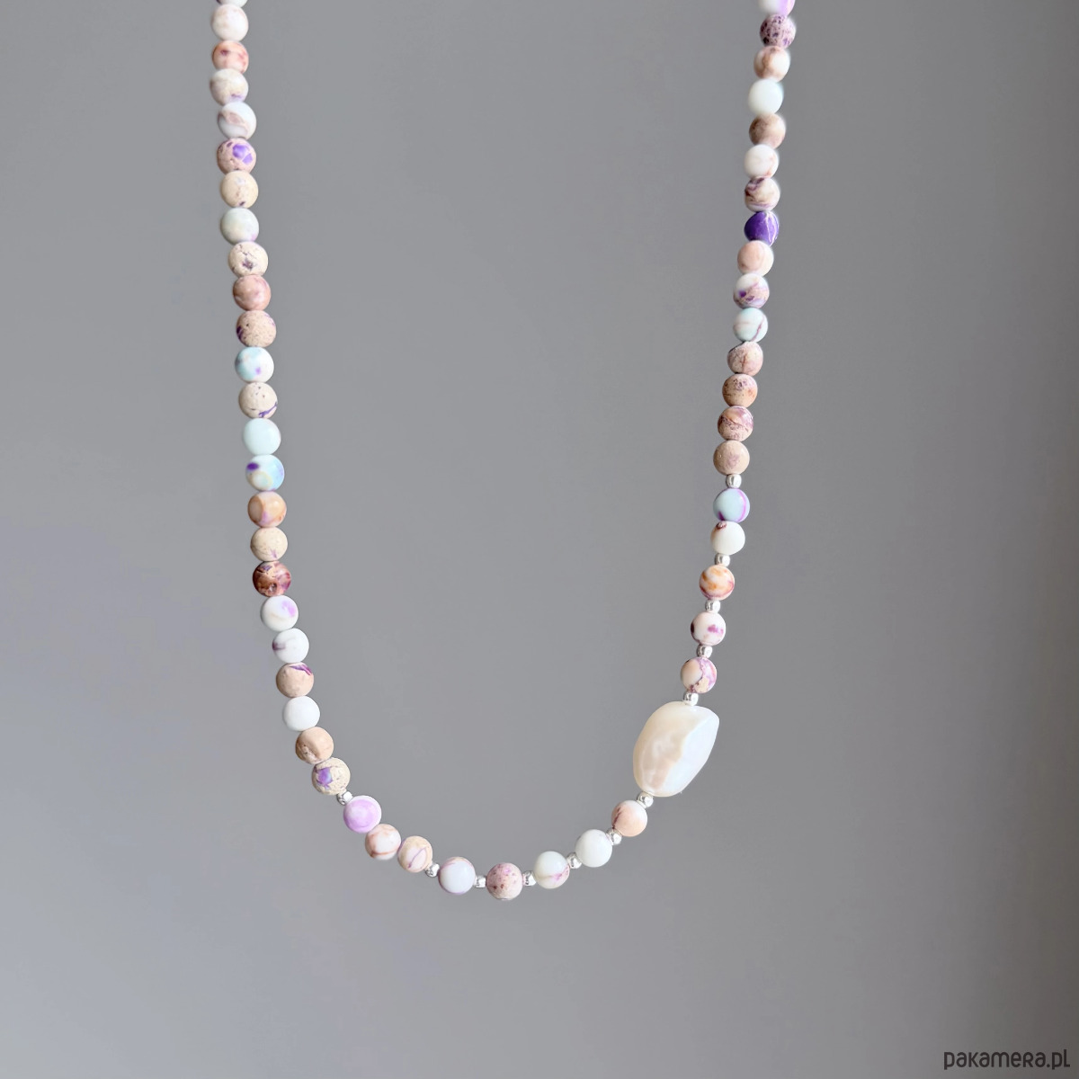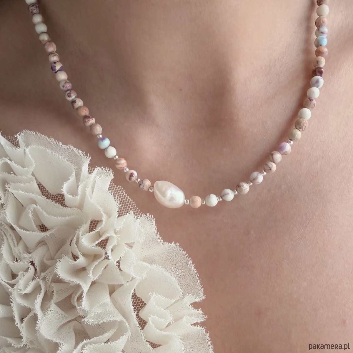 Naszyjnik kamienie naturalne jaspis perła PUDROWA PERŁA wykonane z kamienie naturalne