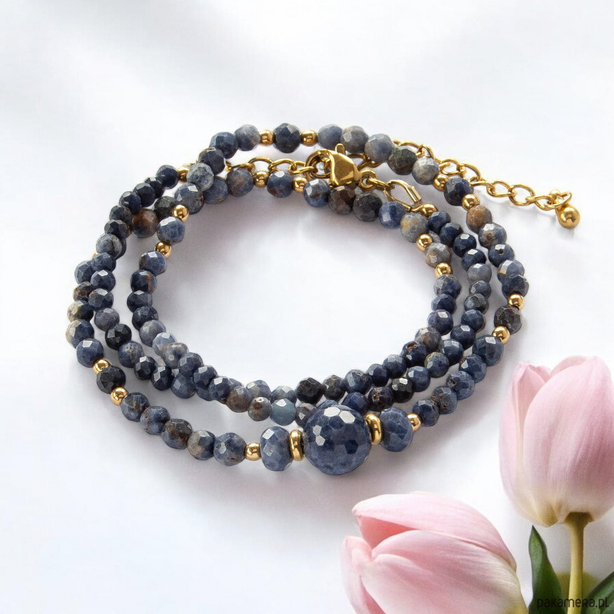 Szafir - kamień mądrości, spokoju i duchowej harmonii. Wspiera koncentrację, pogłębia intuicję i pomaga w osiągnięciu wewnętrznej równowagi. Pomaga chronić przed negatywną energią i wzmacnia poczucie bezpieczeństwa.