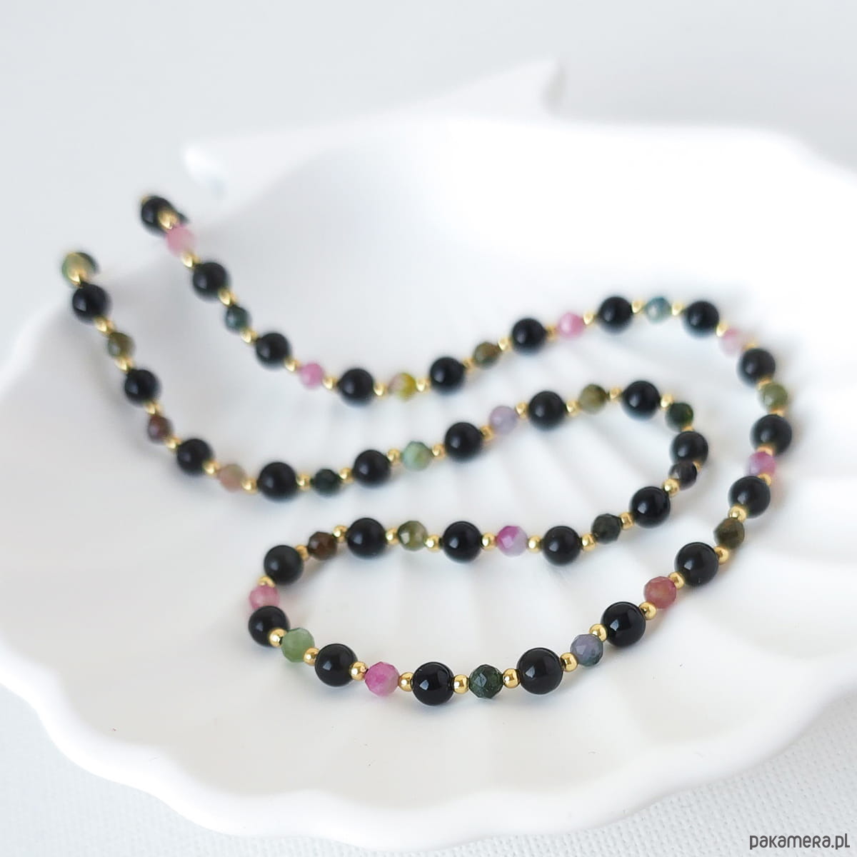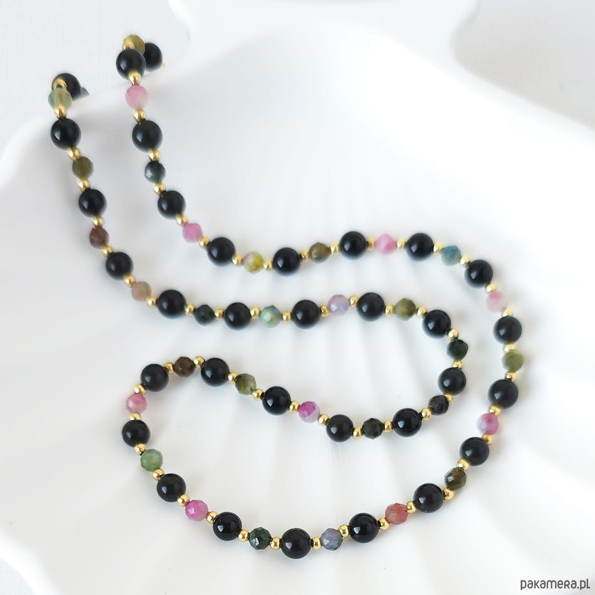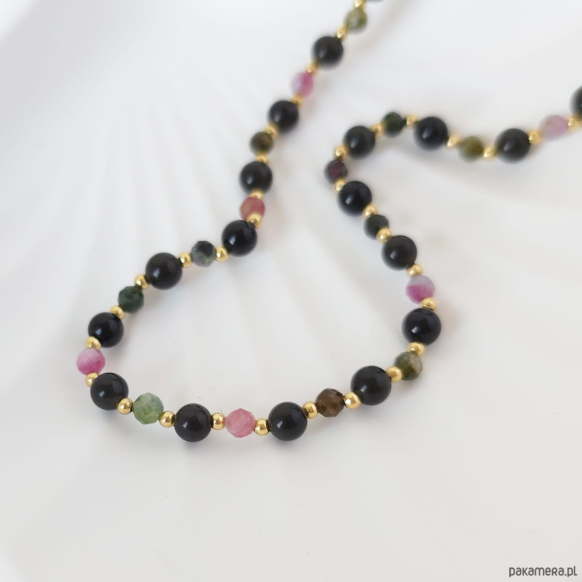 Naszyjnik z kamieni naturalnych: turmalin arbuzowy, onyks