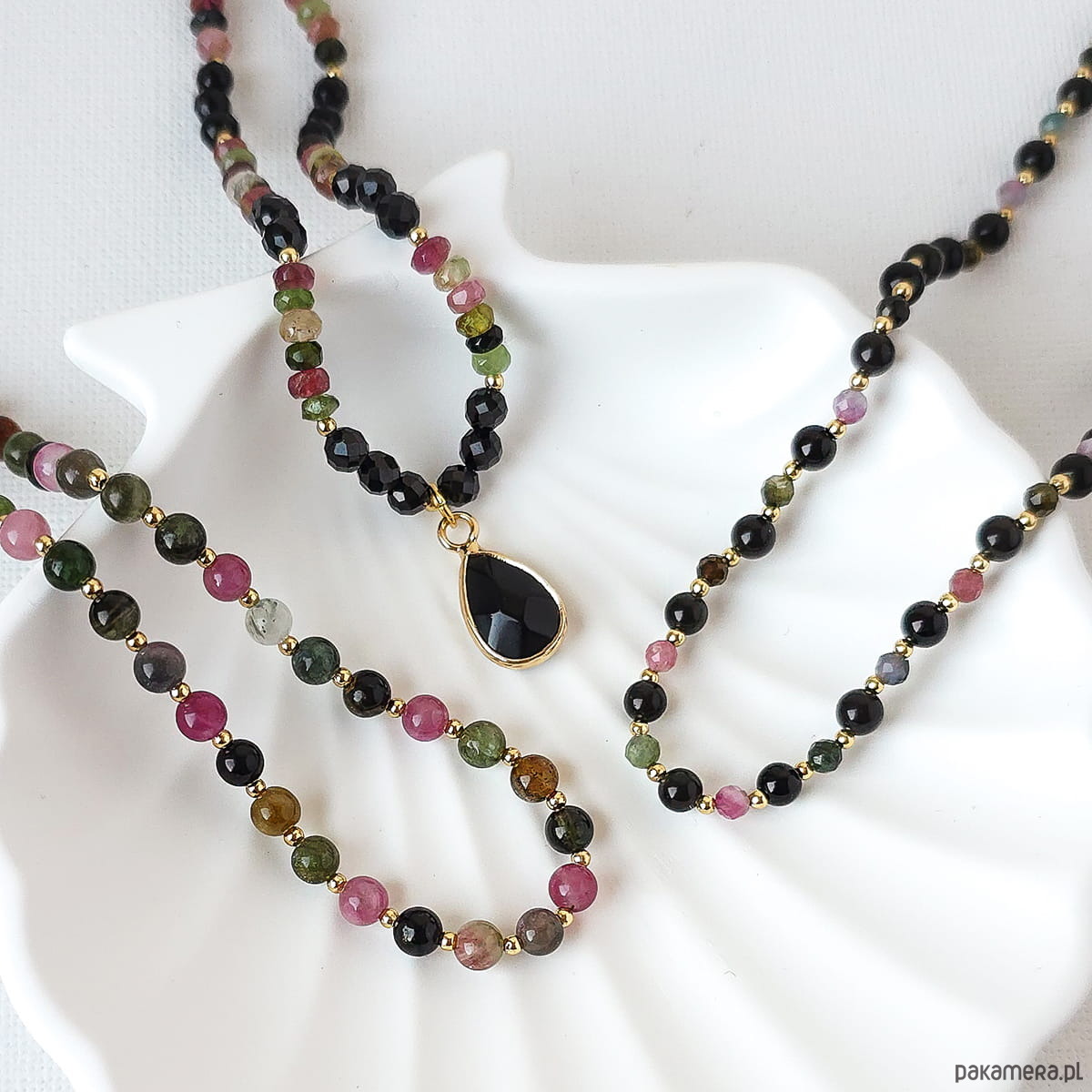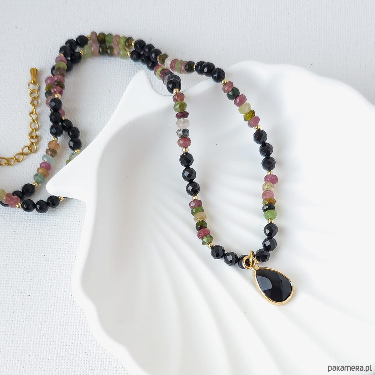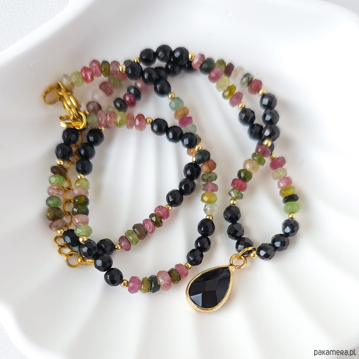 Naszyjnik z kamieni naturalnych: turmalin, spinel