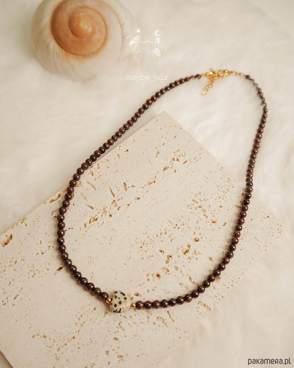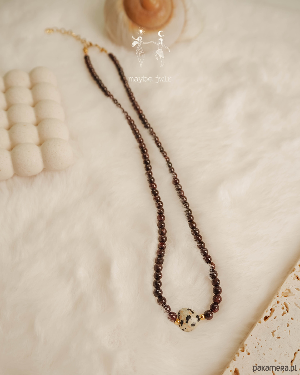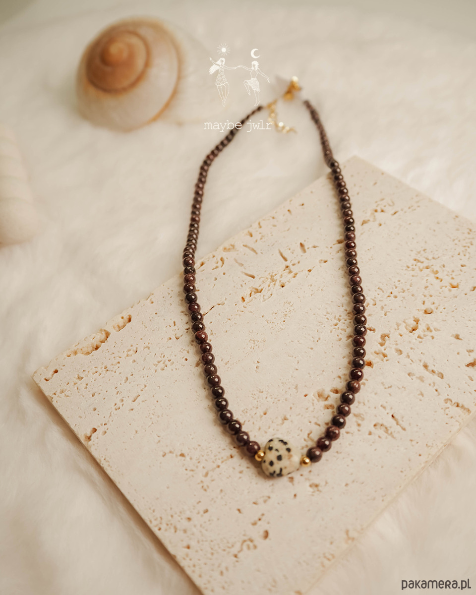 Kamienie naturalne to granat i jaspis dalmatyński, te kamienie oczarowują swoją magiczną mocą, sprzyjają szczęściu i odnalezieniu pasji życia.