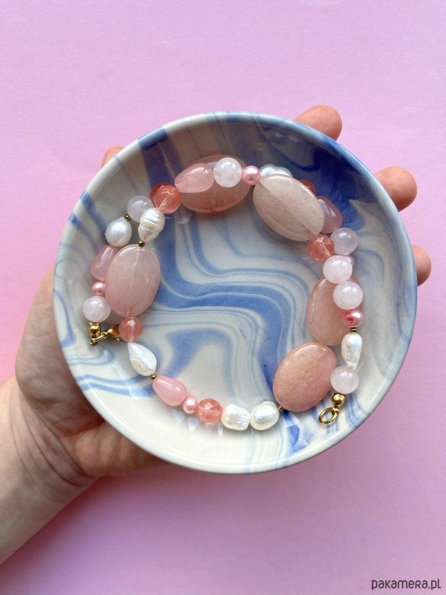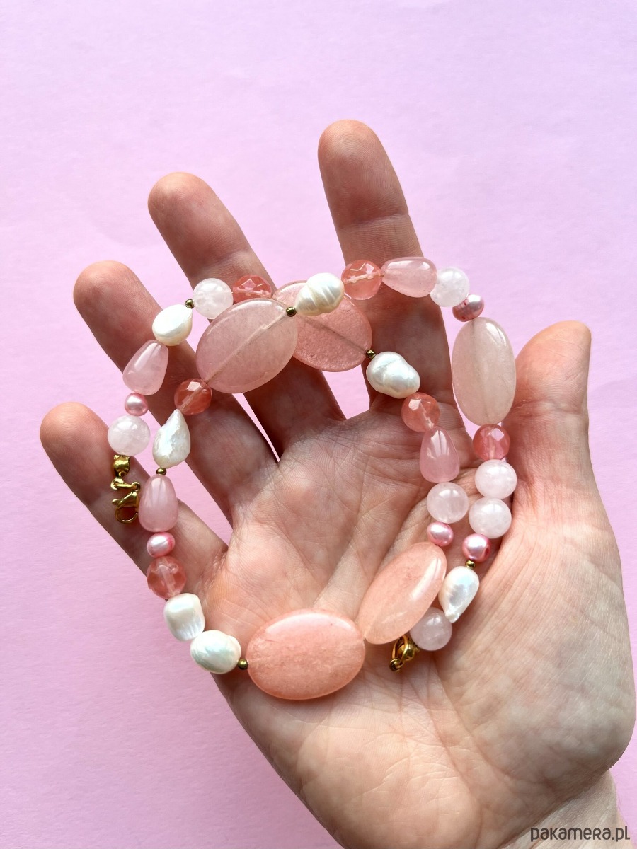 - Rodzaj kamienia: kwarc różowy, perła, agat, jadeit