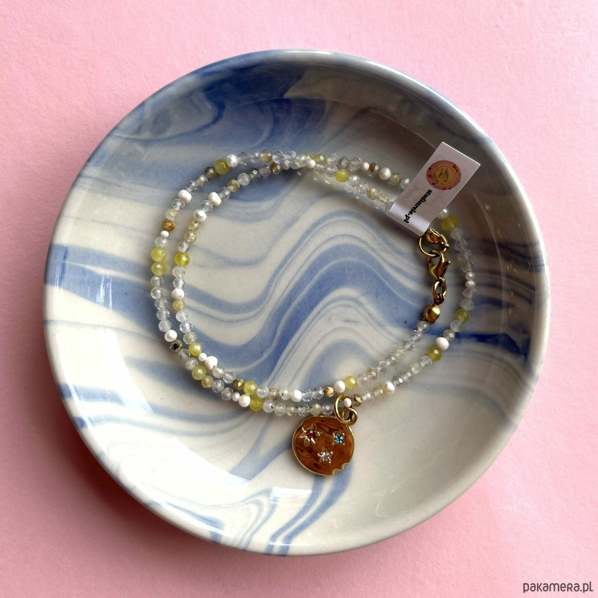 - Materiał: kamień naturalny, perły, stal chirurgiczna
