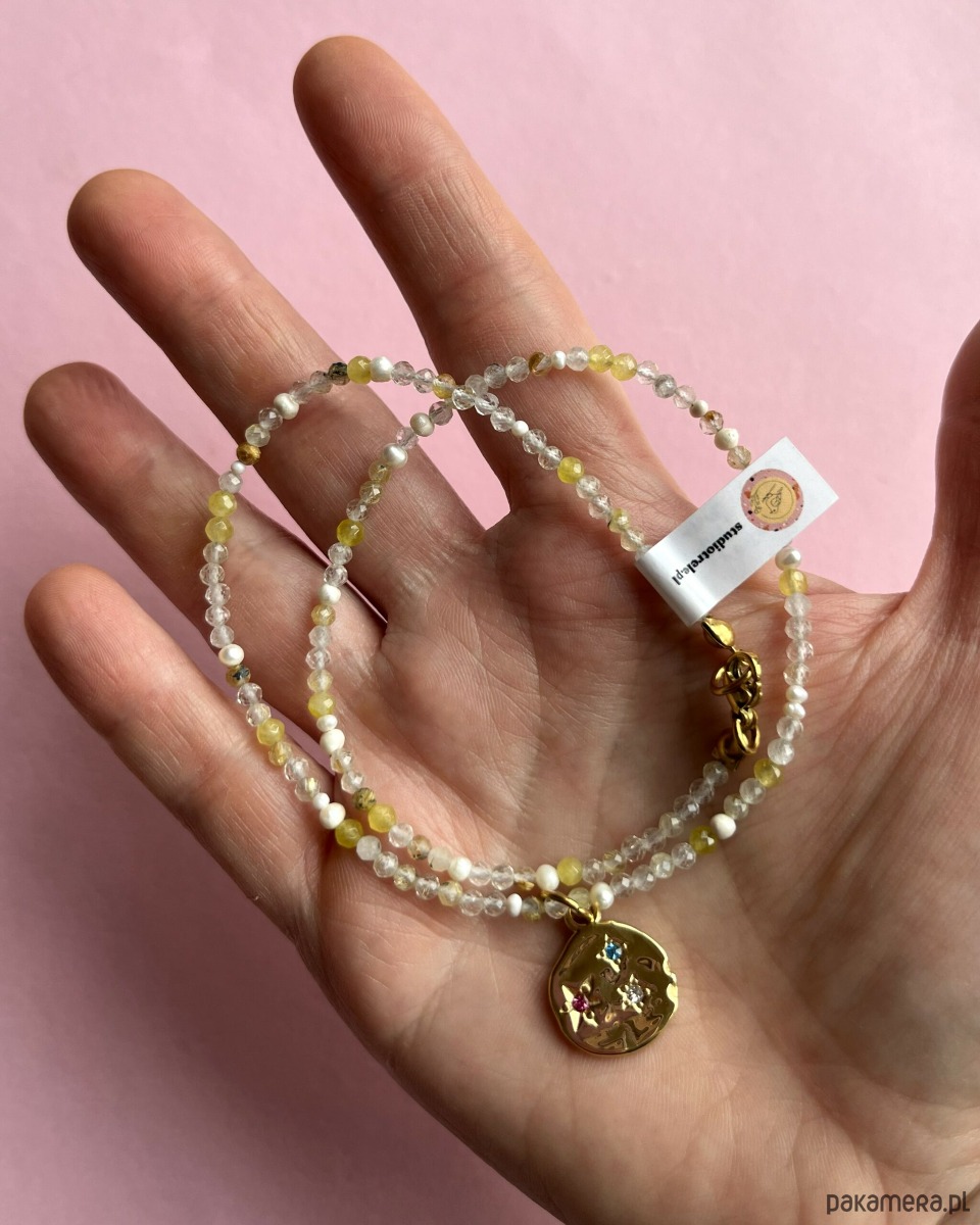 Skład: cytryn, jadeit, perła słodkowodna, stal, cyrkonie