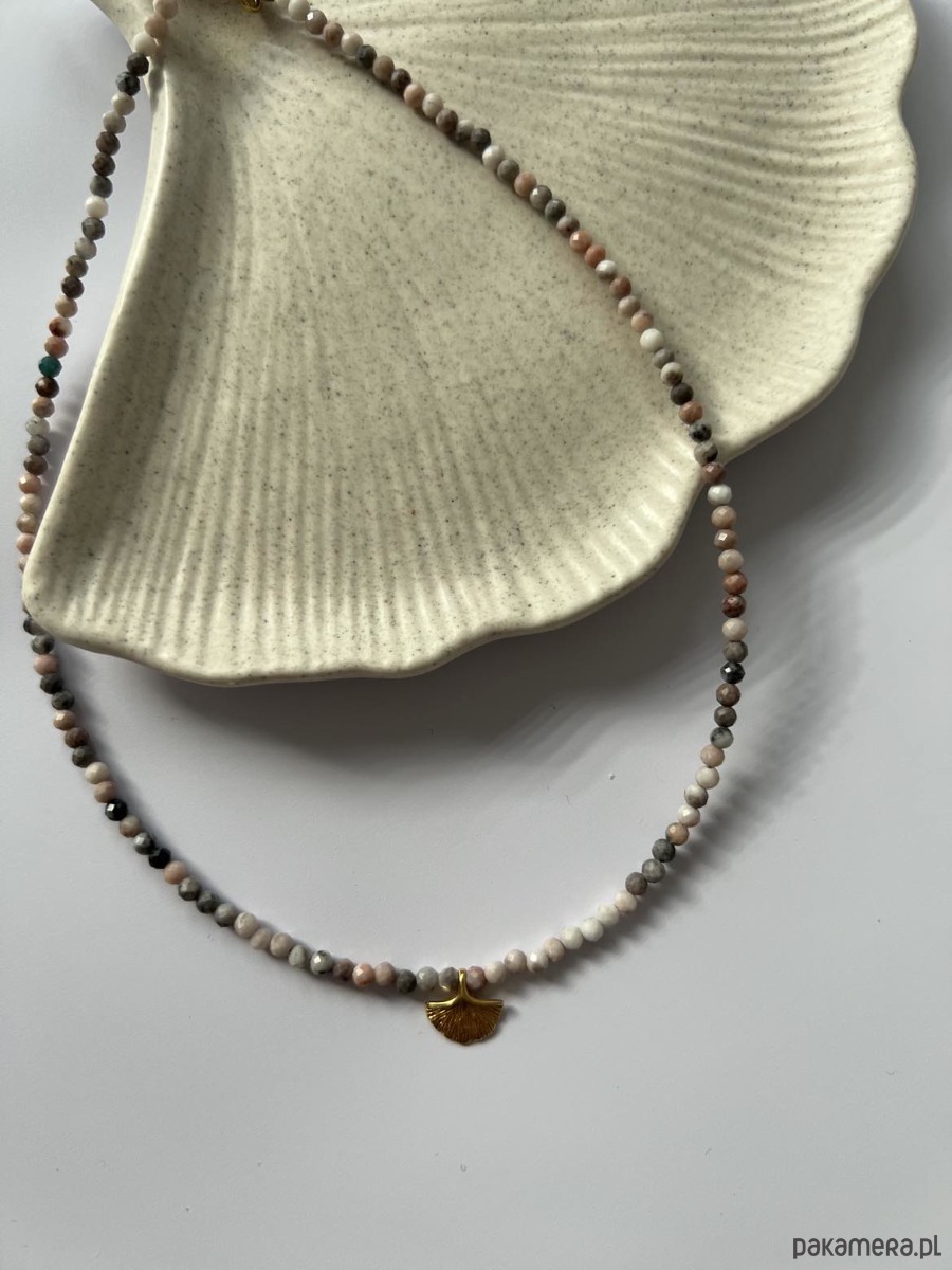 Naszyjnik wykonany z kamienia Jaspis i srebrnych pozłacanych elementów