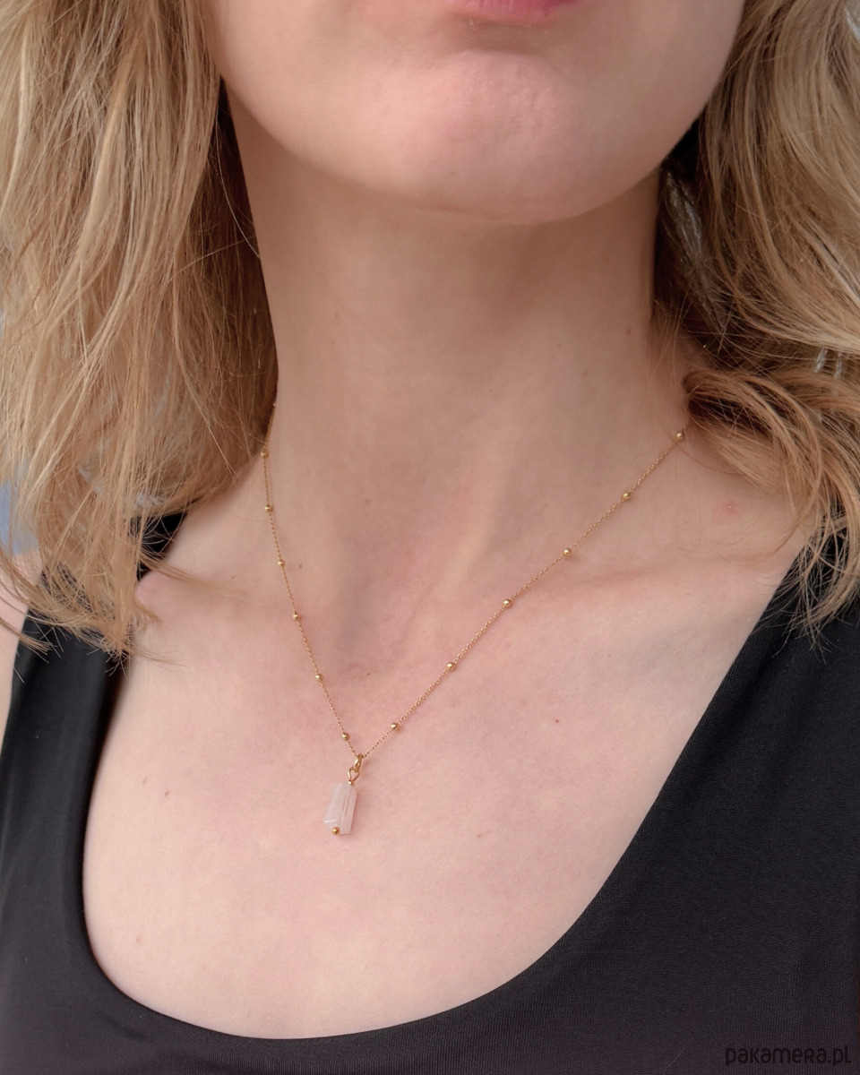 Naszyjnik z kamieniem miłości- kwarcem różowym, złoty