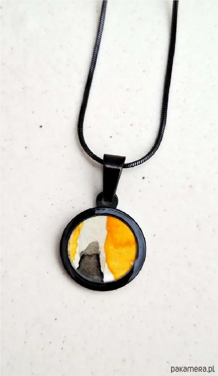 Ten uroczy naszyjnik z kolekcji „Gąska” to prawdziwa ozdoba, która przyciąga wzrok i dodaje uroku każdej stylizacji. Na tle subtelnie malowanej akwareli w odcieniach żółci, bieli, szarości i czerni, znajduje się unikalny wzór, stworzony z dbałością o każdy szczegół. Jego naturalne piękno, uchwycone z precyzją, tworzy naszyjnik, który zachwyca swoją lekkością i oryginalnością. Tło, malowane z niezwykłą starannością przy użyciu japońskich akwareli z naturalnych pigmentów, dodaje naszyjnikowi niepowtarzalnego charakteru i artystycznego wyrazu. Baza naszyjnika, wykonana z trwałej i hipoalergicznej stali chirurgicznej, gwarantuje komfort noszenia i stanowi idealne tło dla kolorowych akwareli. Ten ręcznie robiony naszyjnik to doskonały wybór dla kobiet, które cenią sobie oryginalność i piękno. To również idealny pomysł na prezent, pełen delikatności, wdzięku i artystycznego ducha.