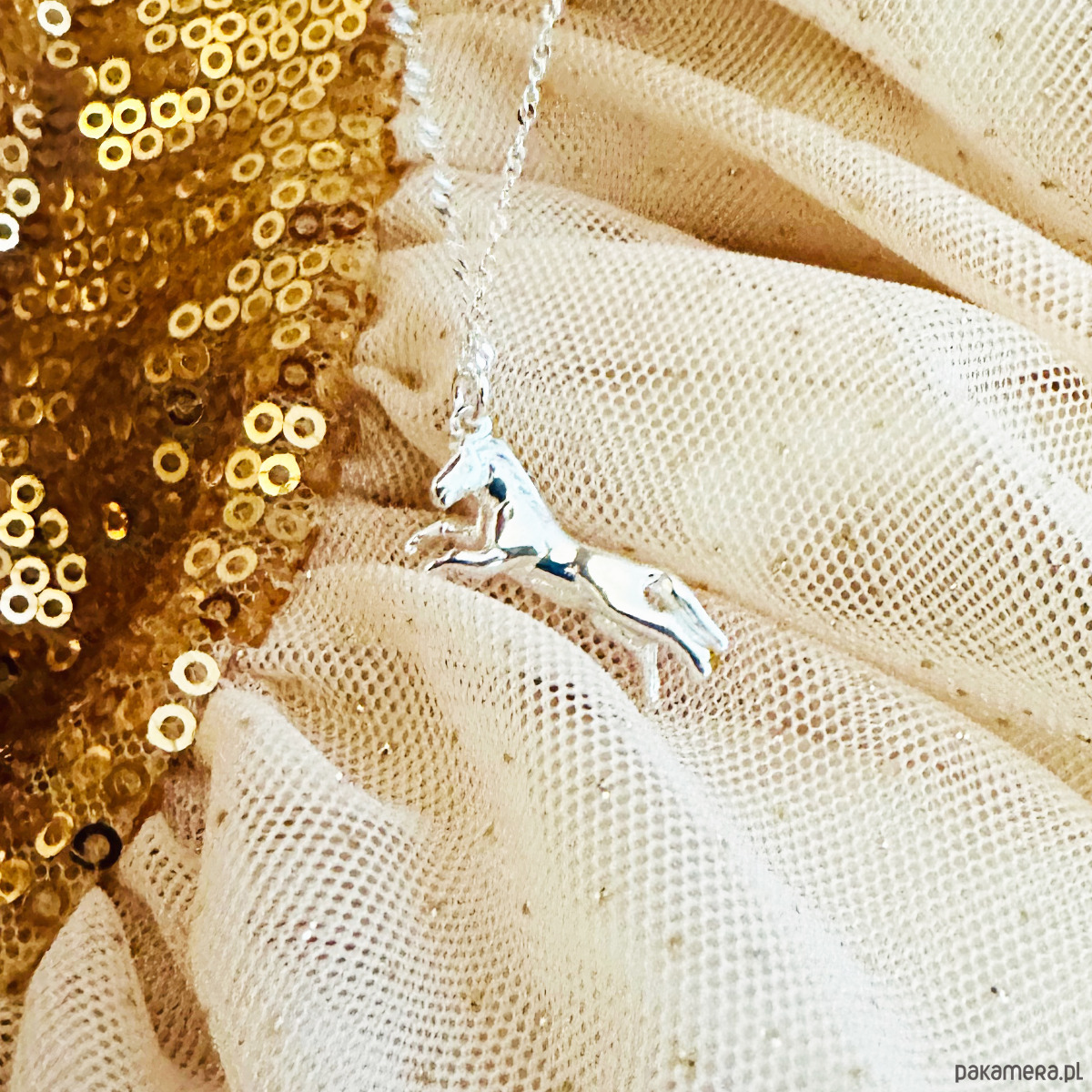 Naszyjnik z koniem, srebrny koń , konik, hippika