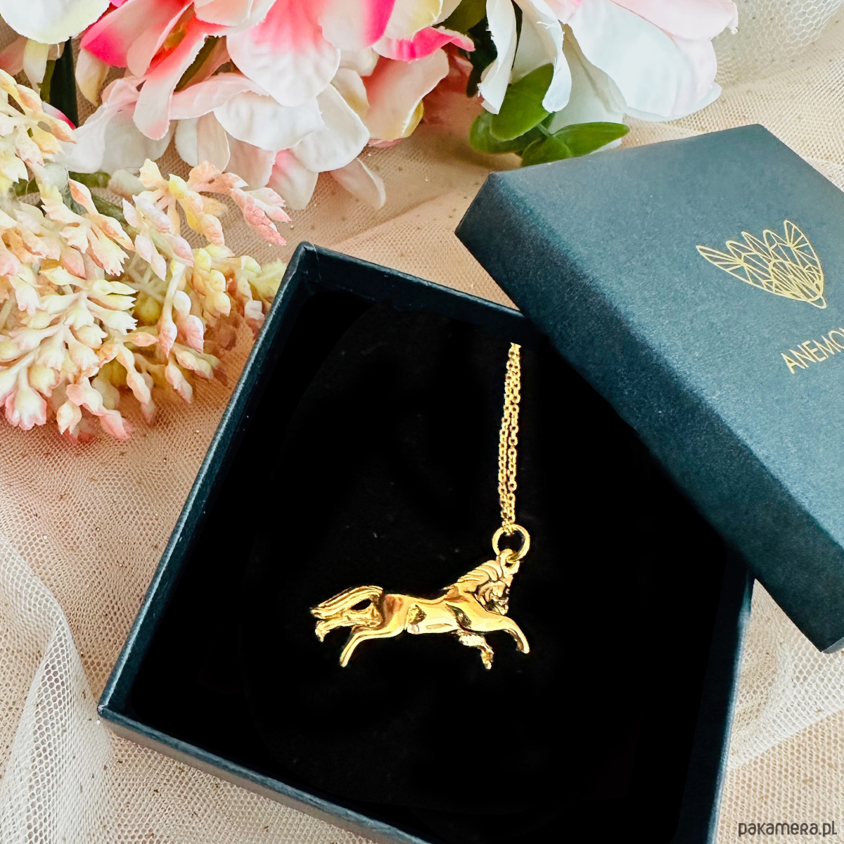 Naszyjnik z koniem, złoty koń , konik, hippika