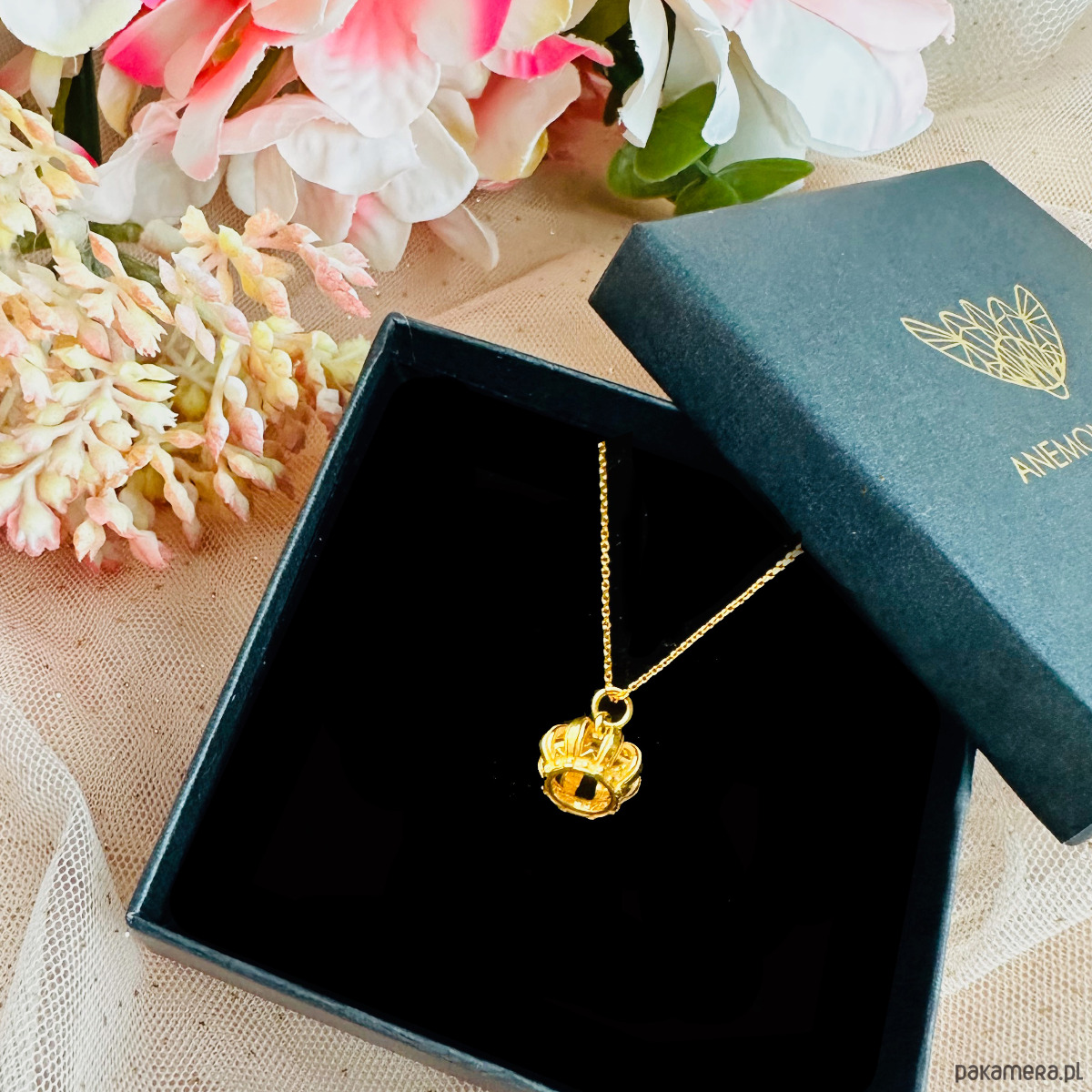 Wyjątkowy naszyjnik z piękną realistycznie oddaną koroną, zawieszką misternie wykonaną z malutkimi detalami.