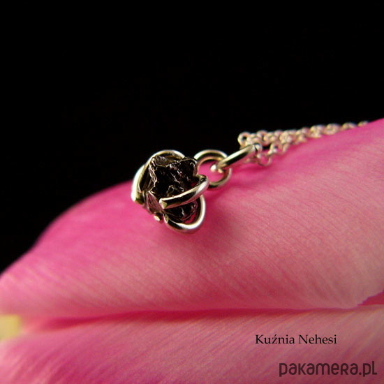 Naszyjnik którego sercem jest prawdziwy żelazny Meteoryt. Spadek Campo del Cielo w Argentynie - 1576r. Skałka z kosmosu dla Ciebie. Liczą sobie od 4,5 do 13 miliardów lat, Pochodzą z Marsa Księżyca, komet, asteroidów. Składają się z minerałów, które występują również na ziemi, ale różnica polega na tym, że kosmiczne minerały nie posiadają luk powietrznych pomiędzy molekułami, bo powstały w próżni kosmicznej. Średnica oprawy to około 7x8 milimetra. Srebro próby 925. Łańcuszek o długości 50cm. Całość wykonałam ręcznie. Zdjęcie na manekinie o rzeczywistych ludzkich rozmiarach. Moje meteoryty posiadają certyfikaty. Serdecznie polecam - Nehesi