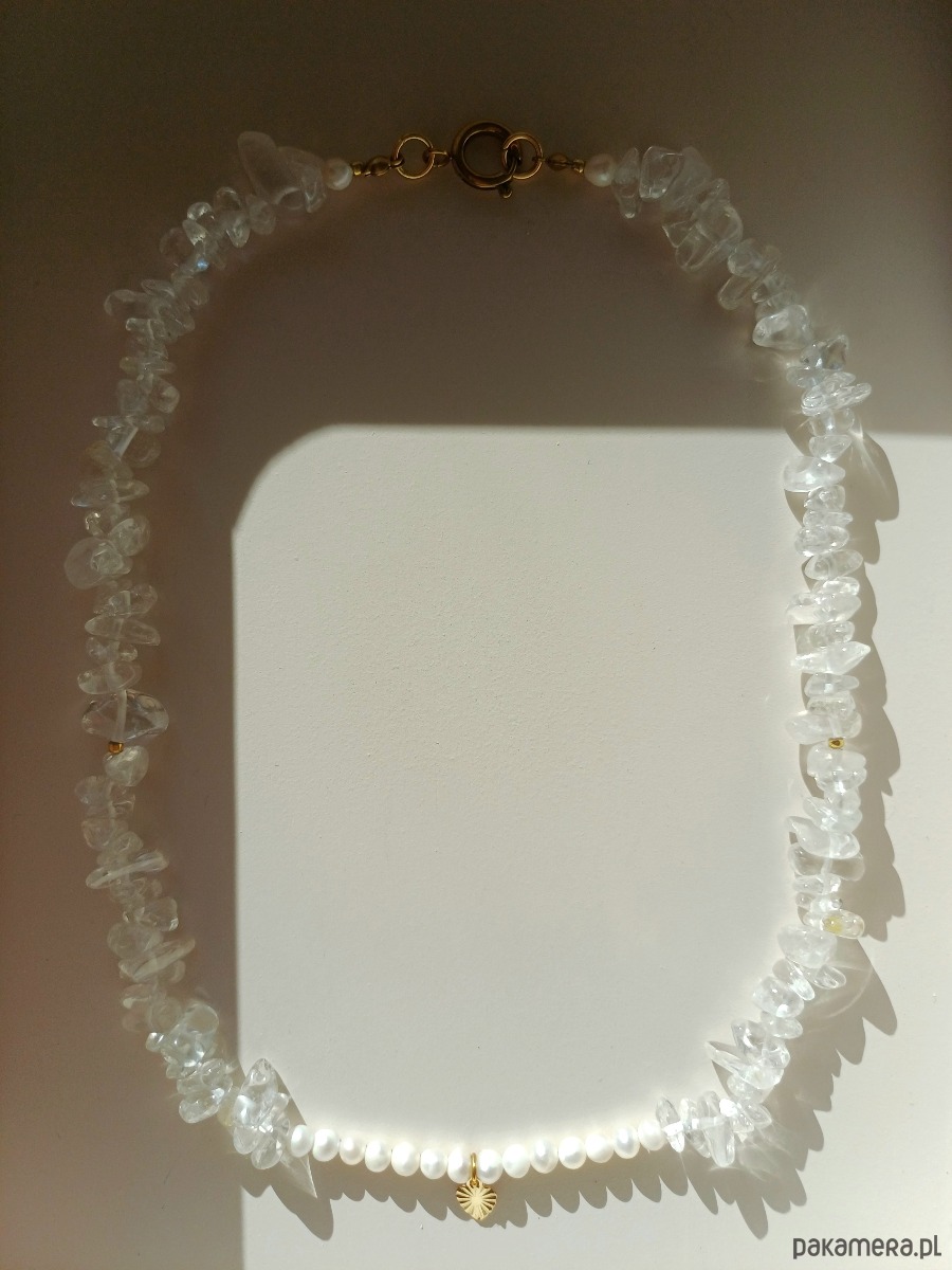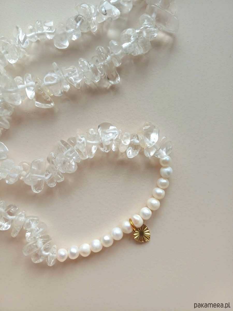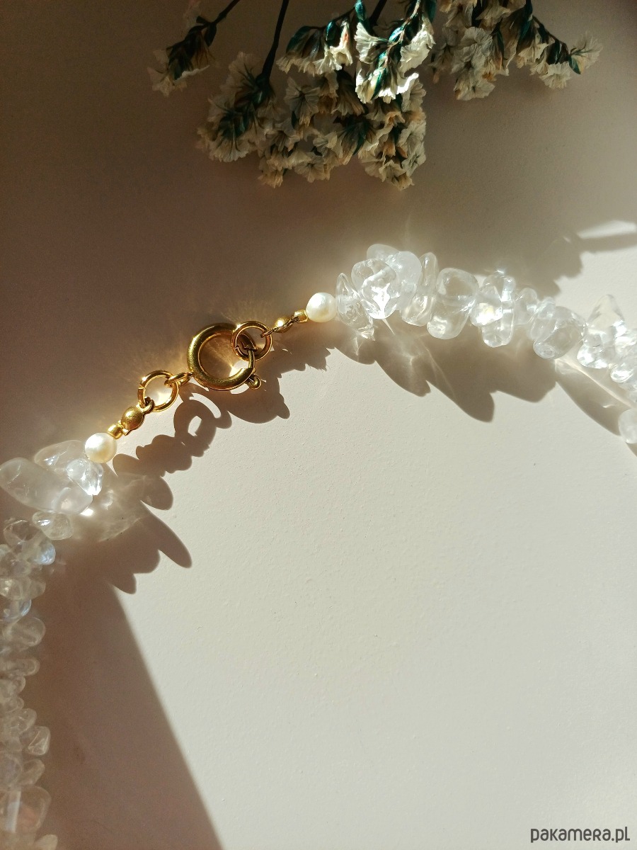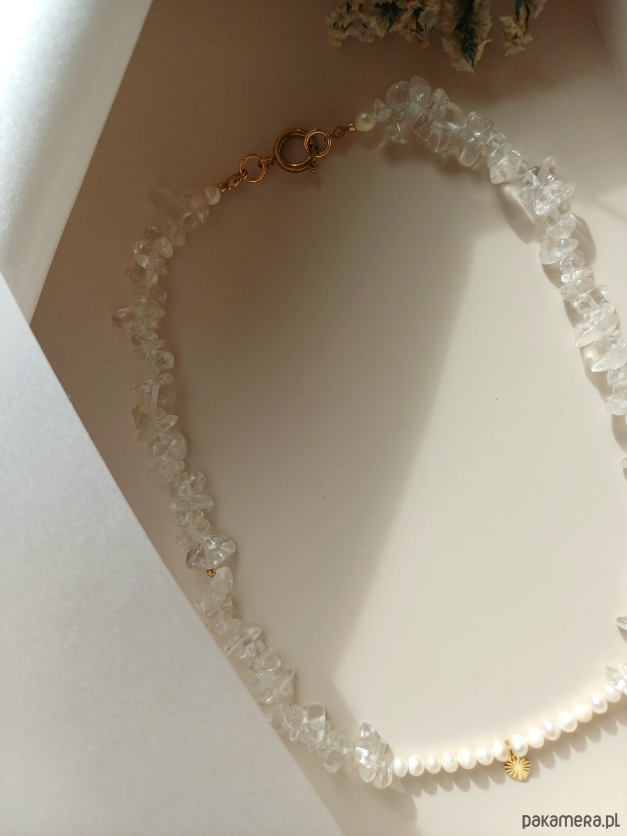 Naszyjnik z kryształem górskim i perłami naturalnymi