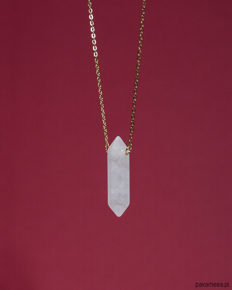 Minimalistyczny naszyjnik z KRYSZTAŁEM GÓRSKIM w kształcie grota, zawieszonym na delikatnym łańcuszku ze STALI SZLACHETNEJ. Będzie się pięknie prezentował solo, jak i w połączeniu z innymi naszyjnikami i łańcuszkami ułożonymi kaskadowo.