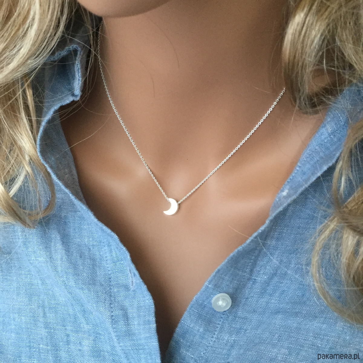 Efektowny naszyjnik z zawieszką w kształcie księżyca.