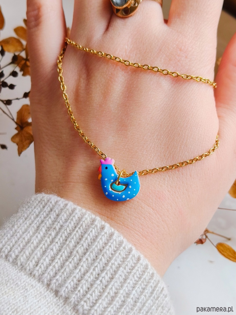 Naszyjnik z kurką, kurka wisiorek dla osoby lubiącej wieś niebieska kura