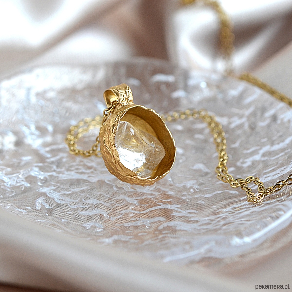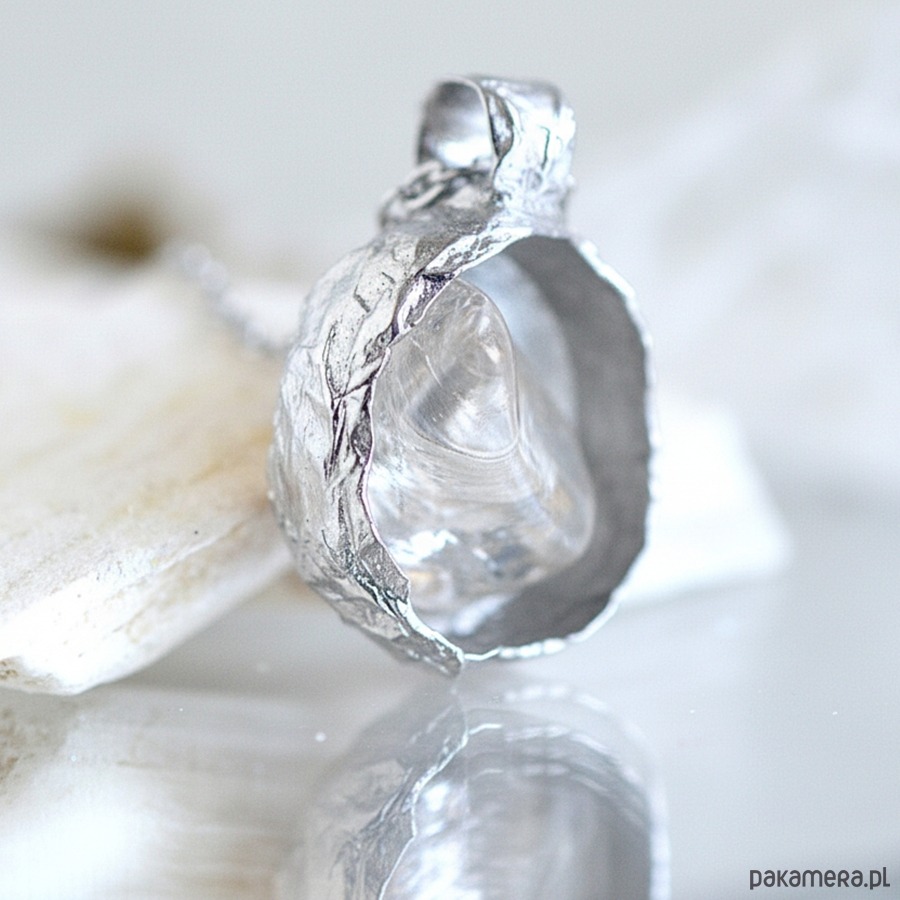 Naszyjnik „Kulka” w organicznej strukturze łączy w sobie delikatność i trwałość. Kulista forma, otaczająca kwarc dymny, przypomina naturalne zjawiska, takie jak krople wody czy ziarna, które są symbolem życia i odrodzenia. Struktura naszyjnika jest asymetryczna, co podkreśla jego unikalność i artystyczny charakter.