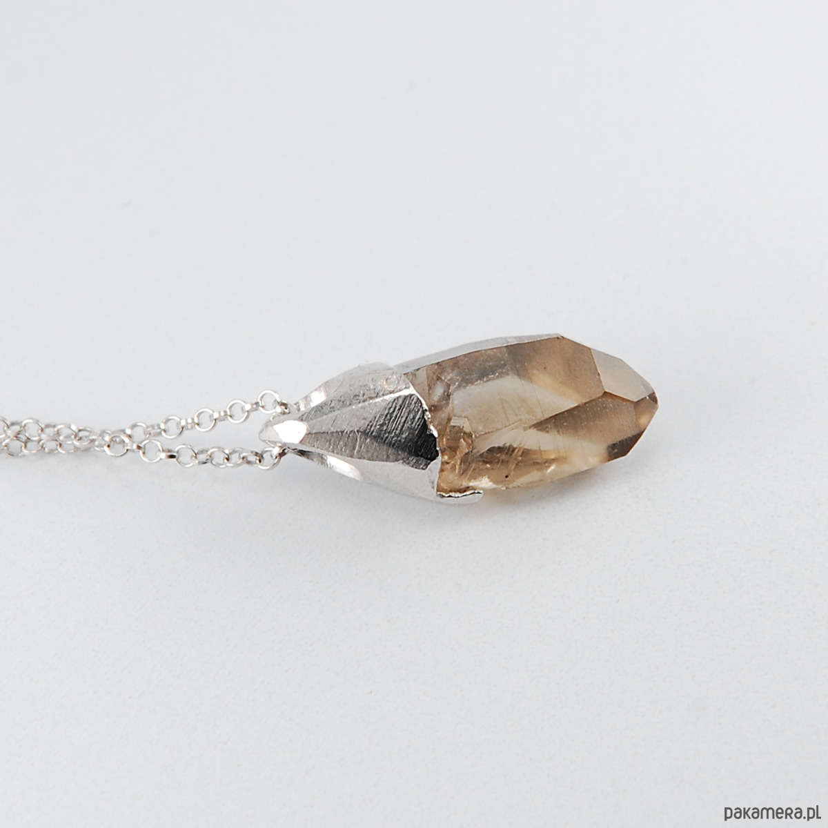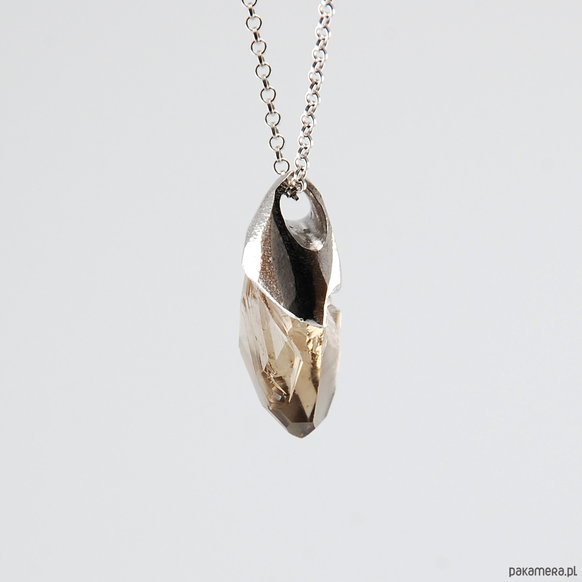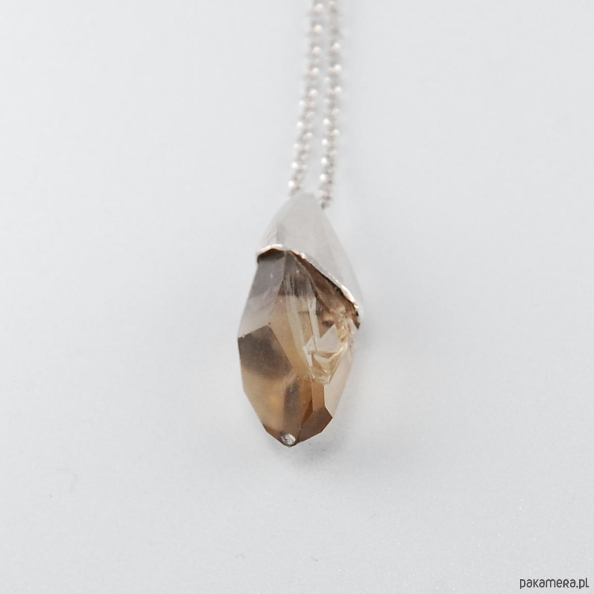Naszyjnik wykonany z unikatowej bryłki kwarcu dymnego oprawionego w srebro.