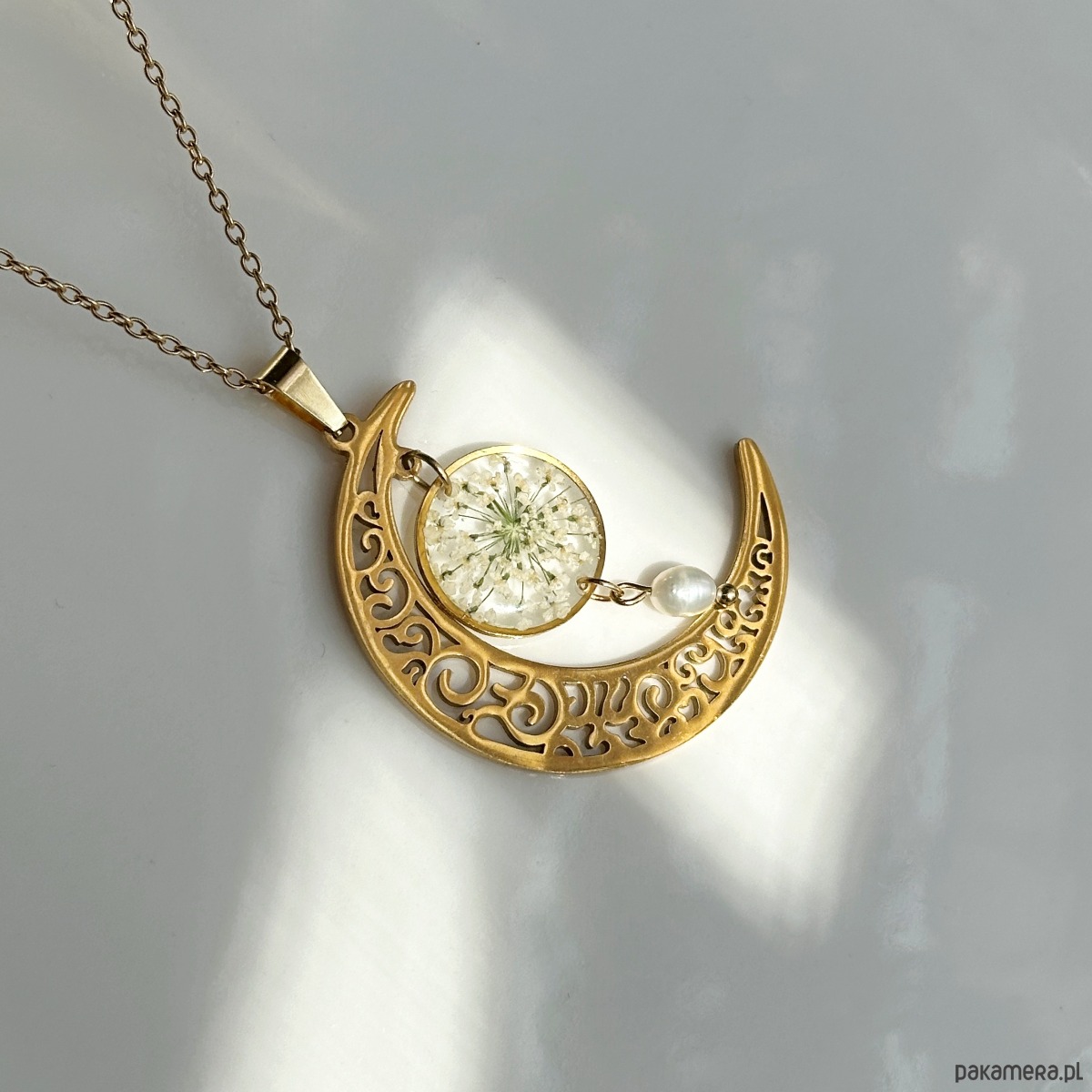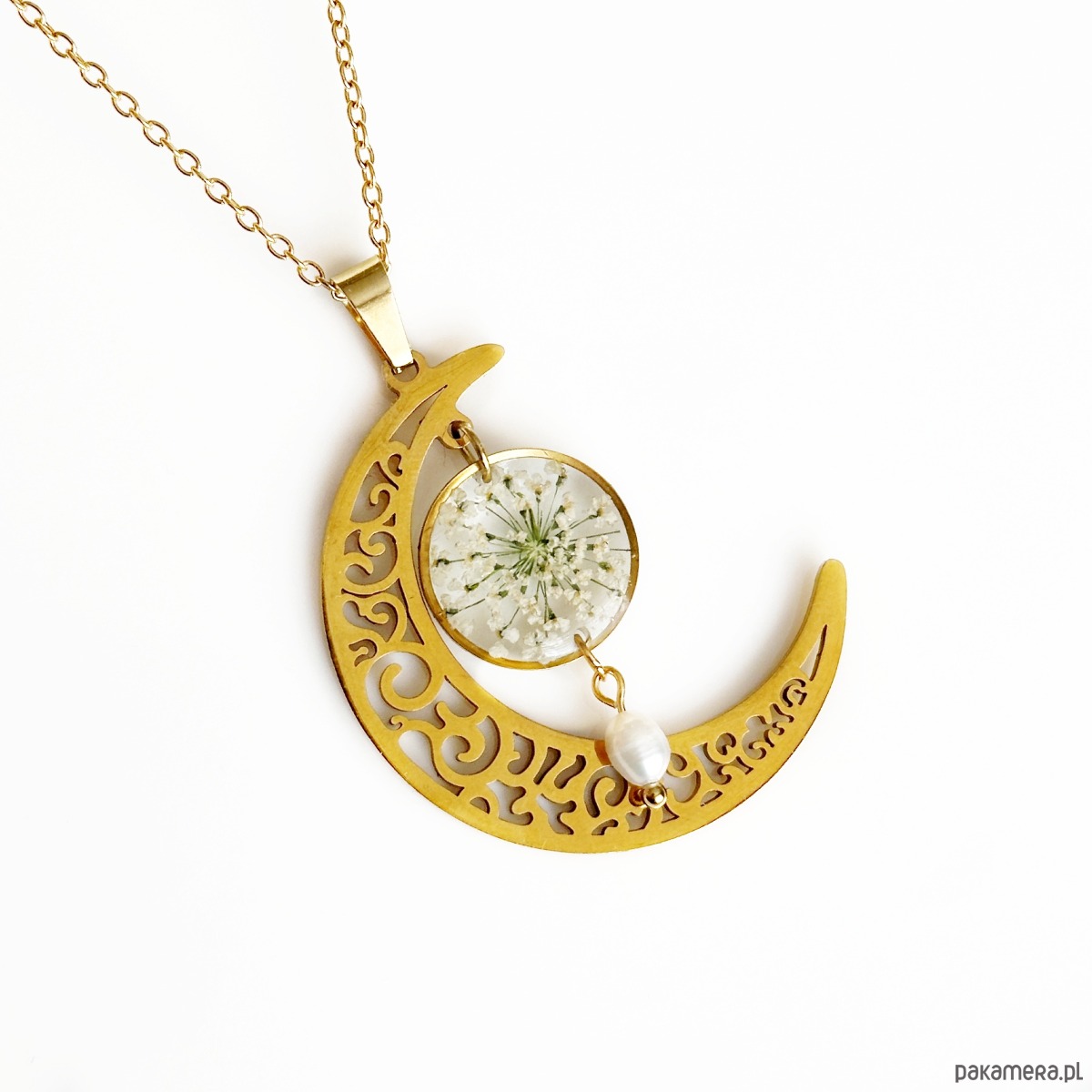 Naszyjnik z kwiatami i perłą, prezent na dzień matki