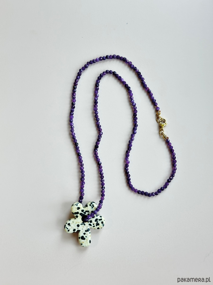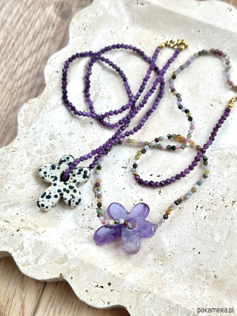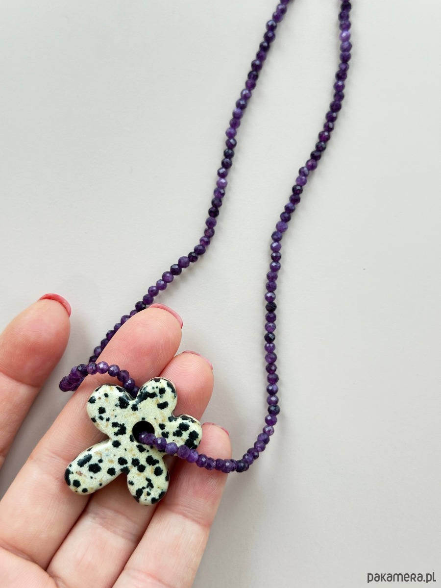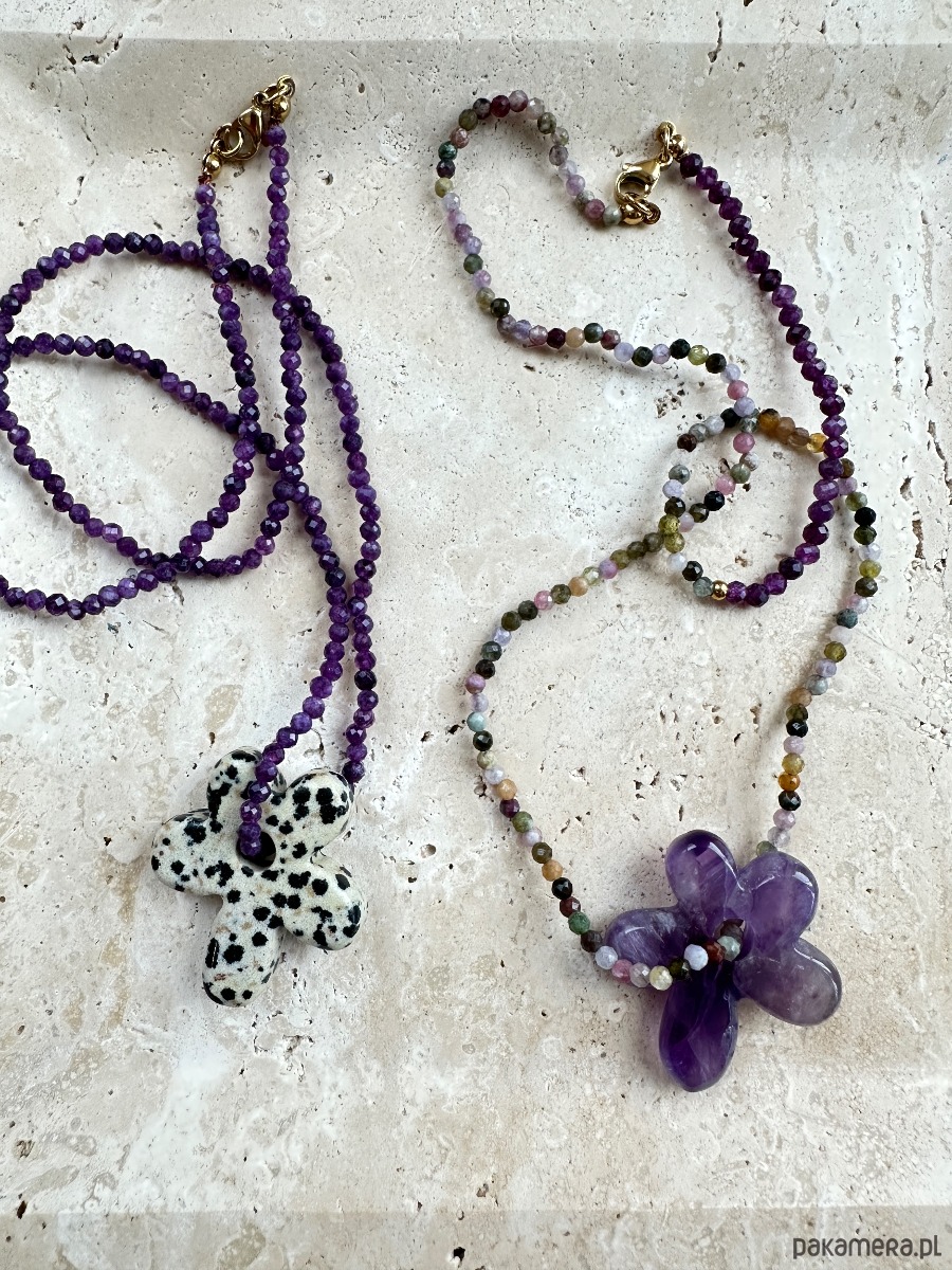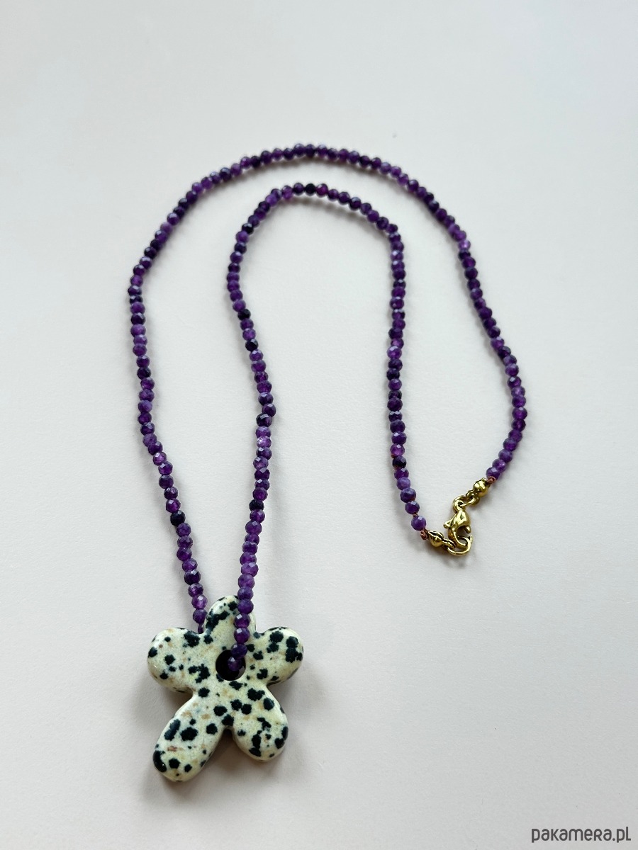 Naszyjnik z kwiatem z kamienia ametyst i jaspis dalmatyński