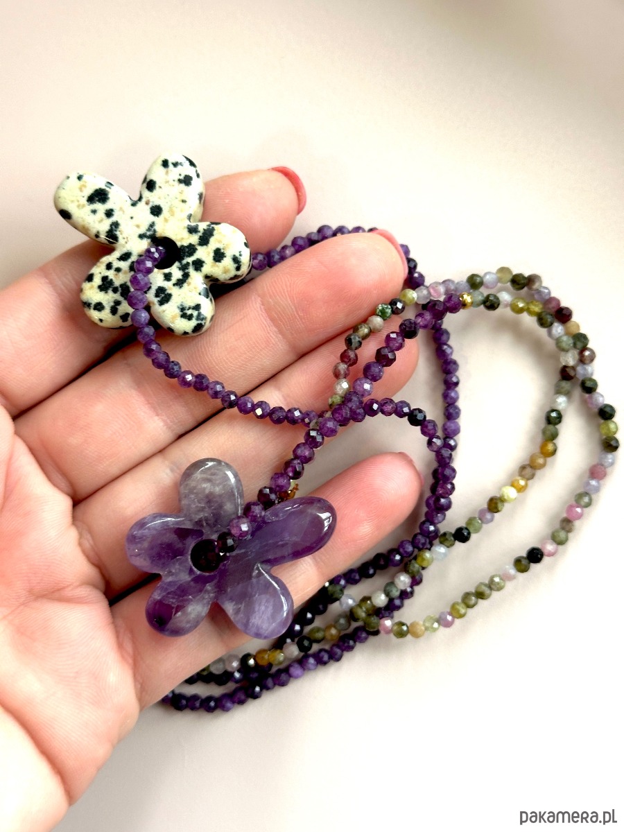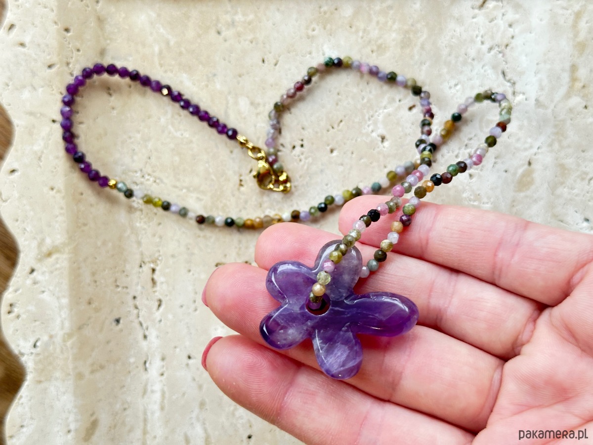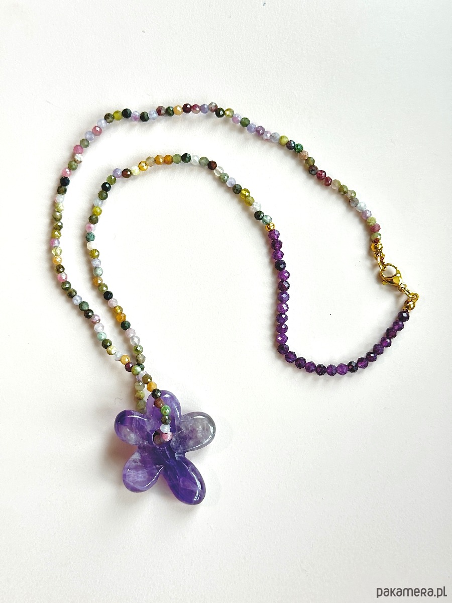 Naszyjnik z kwiatem z kamienia ametyst i turmalin