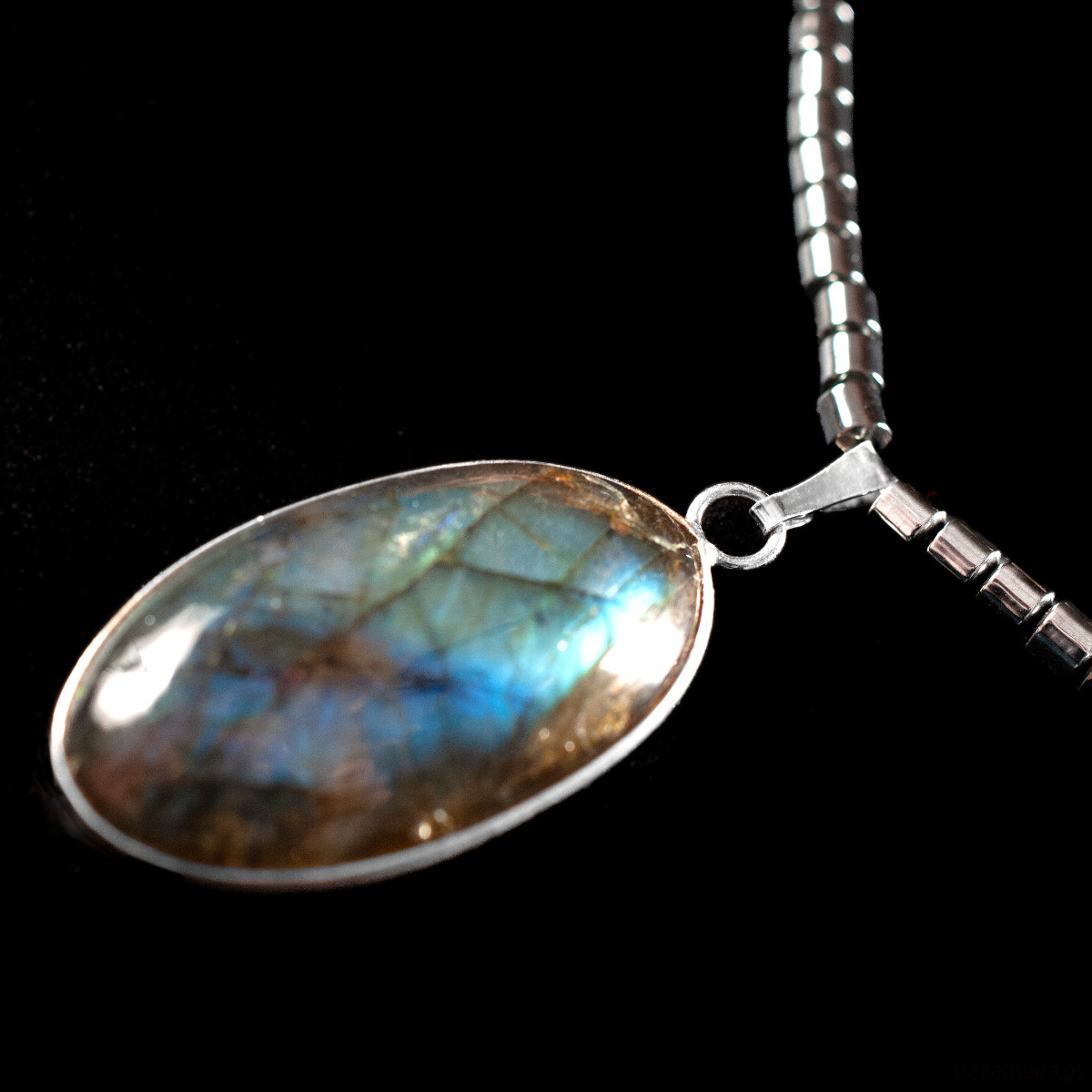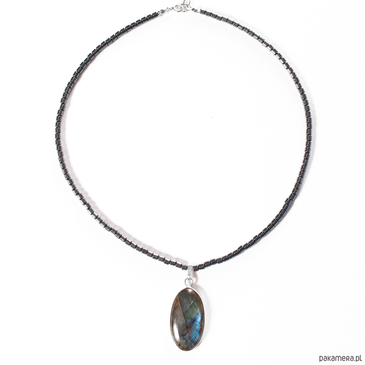 Naszyjnik z labradorytem i hematytem. [ŁN16]