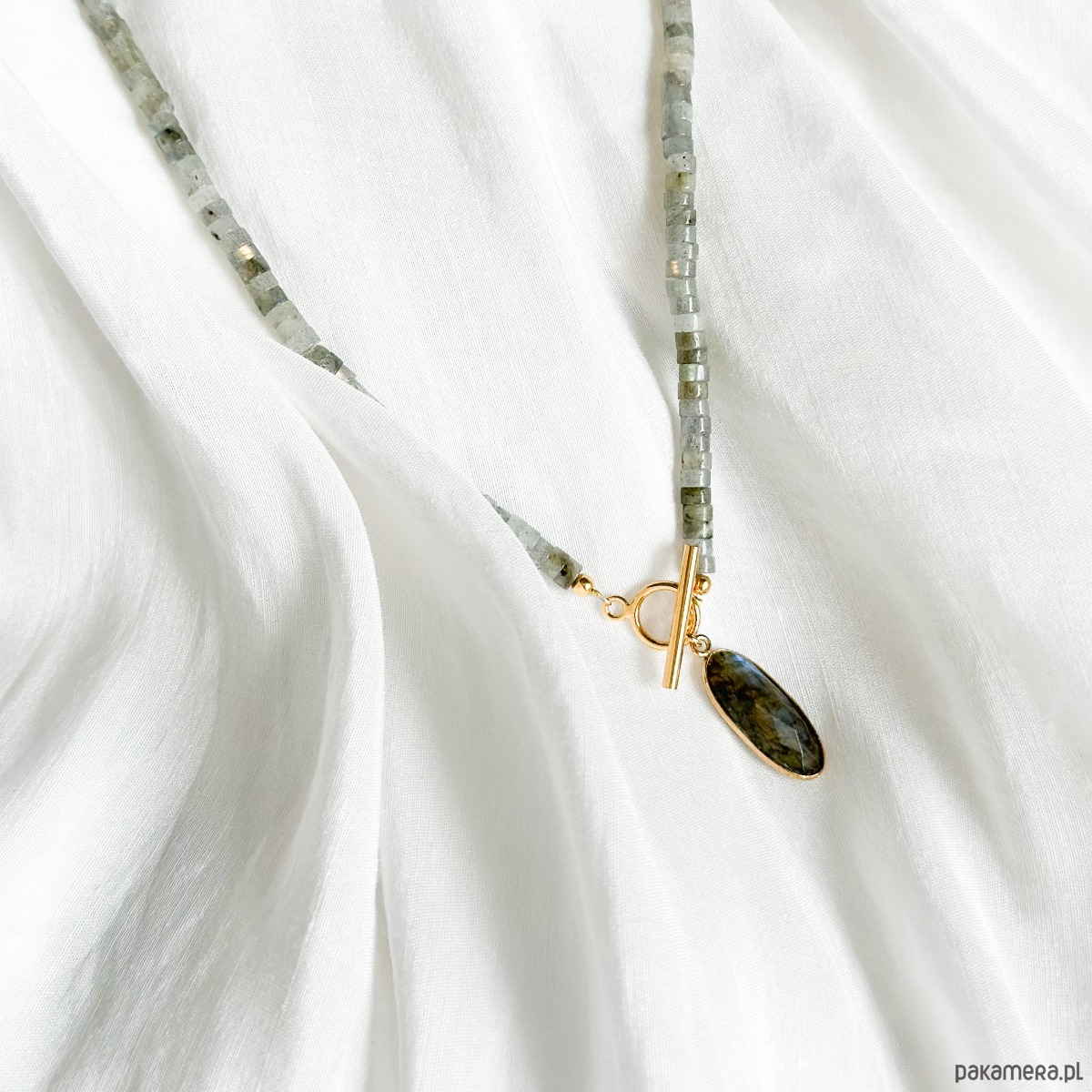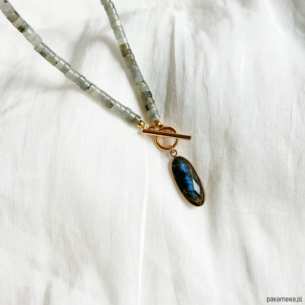 Ozdobny naszyjnik wykonany z wyjątkowego labradorytu. W tym naszyjniku na pewno nie przejdziesz niezauważona.