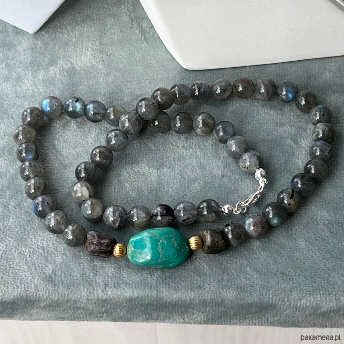 NASZYJNIK z Labradorytu, turkusu, czarnego turmalinu i srebra - MOC i Energia