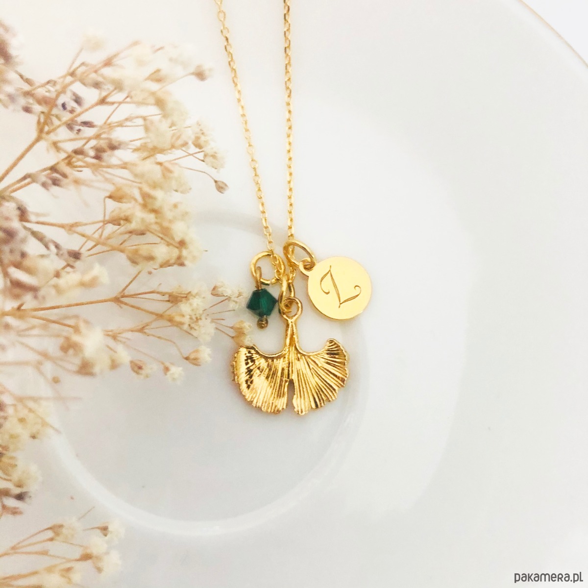 Naszyjnik z listkiem , miłorząb naszyjnik