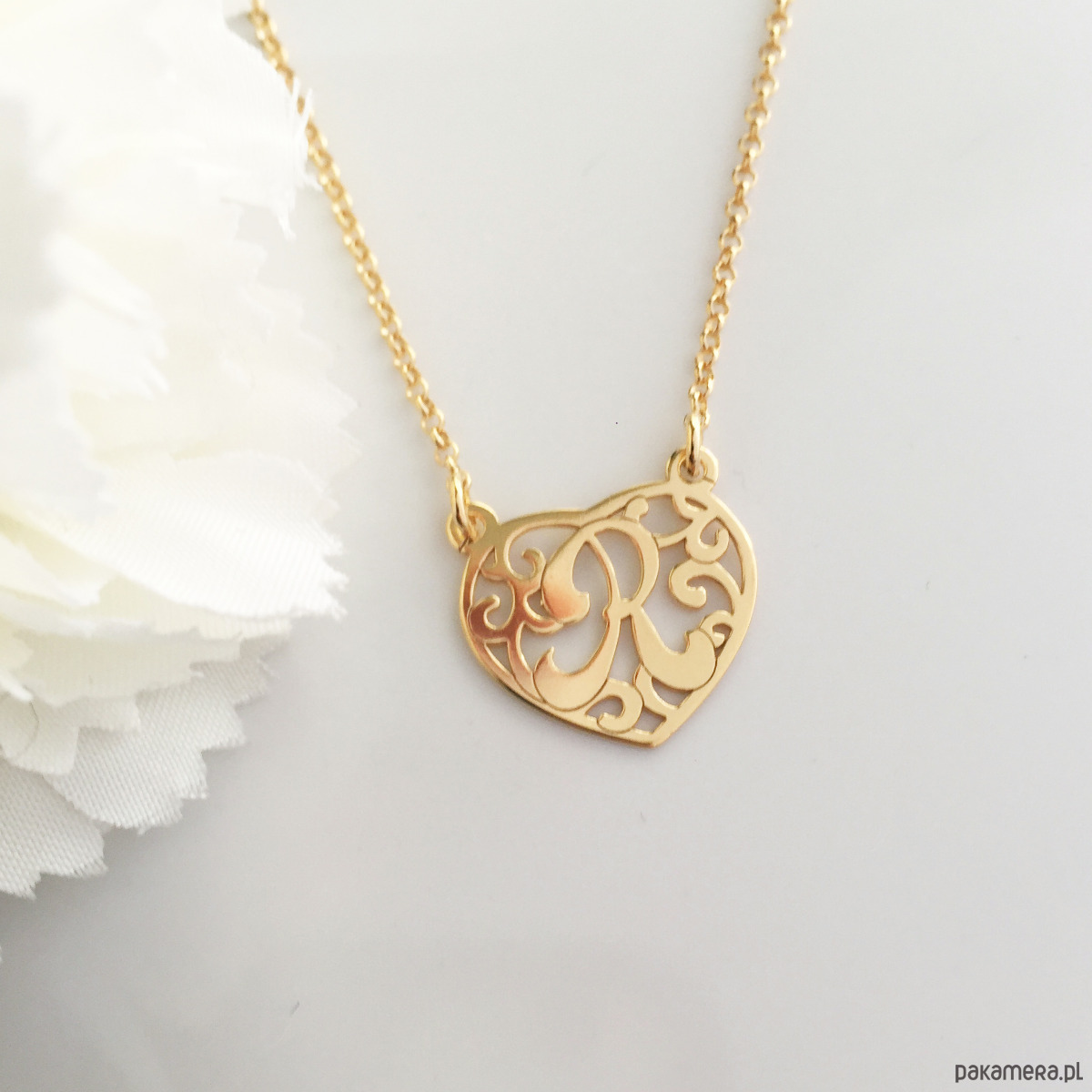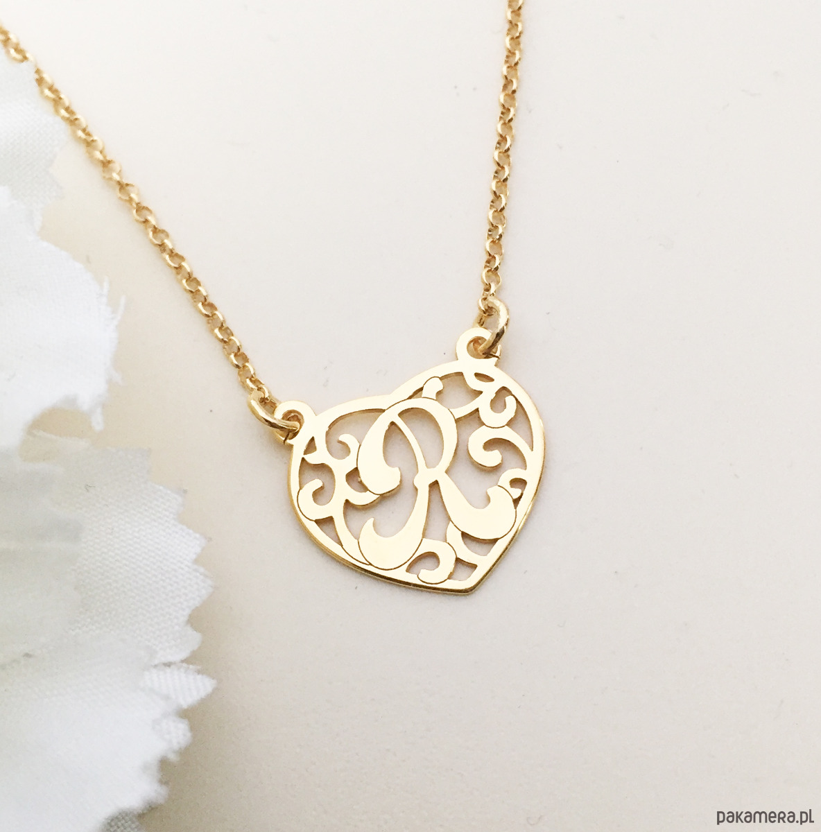 NASZYJNIK z literką R , monogram w sercu