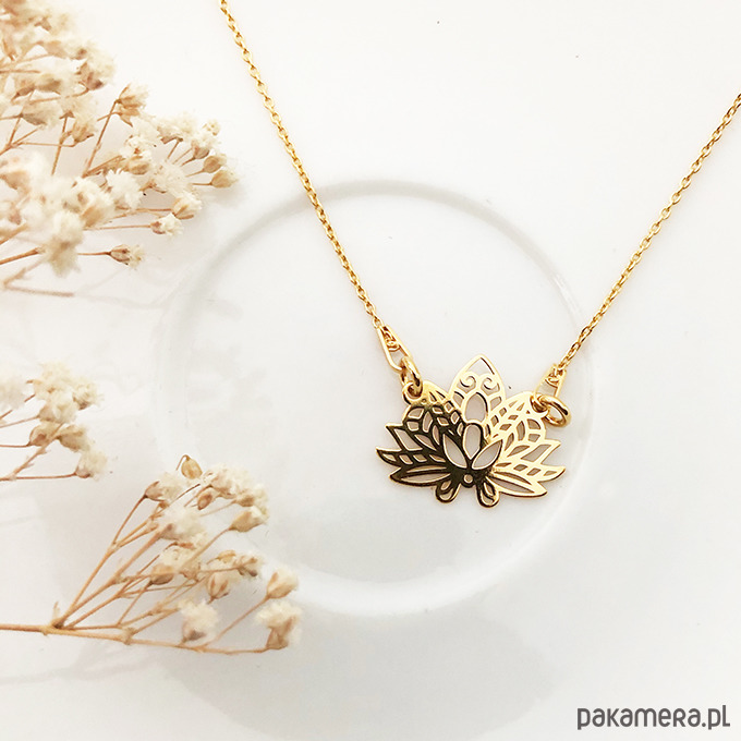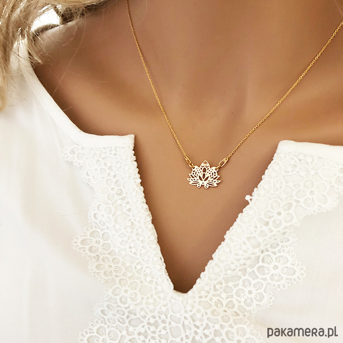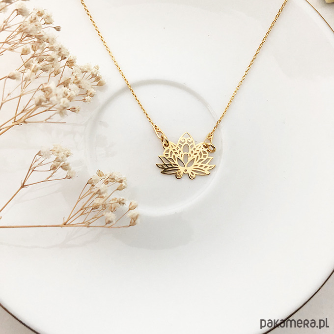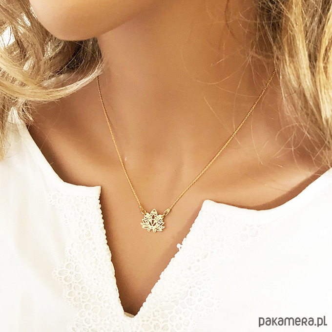 Delikatny naszyjnik z zawieszką w kształcie filigranowego kwiatu lotosu..