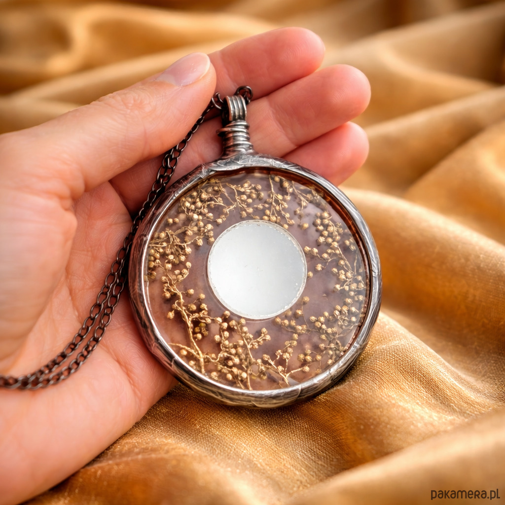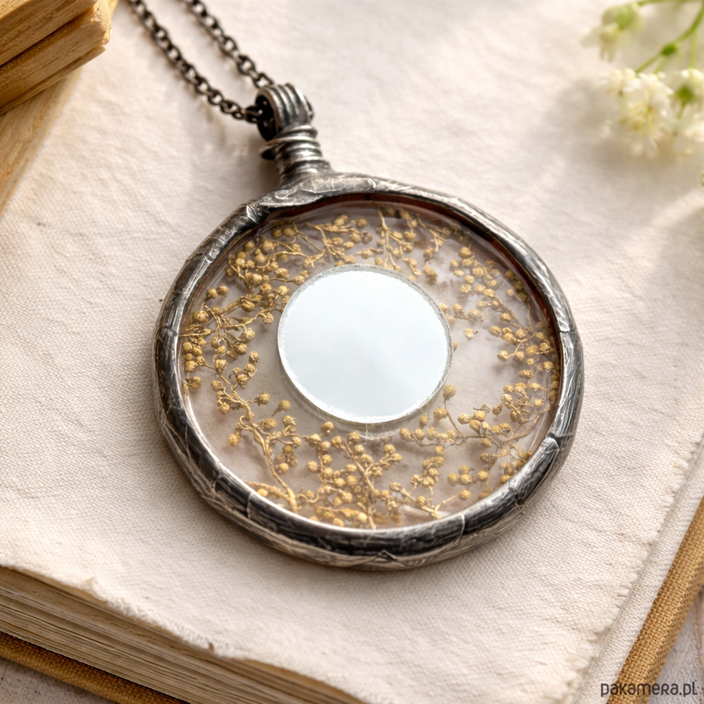 Naszyjnik z lusterkiem i dzikim bzem