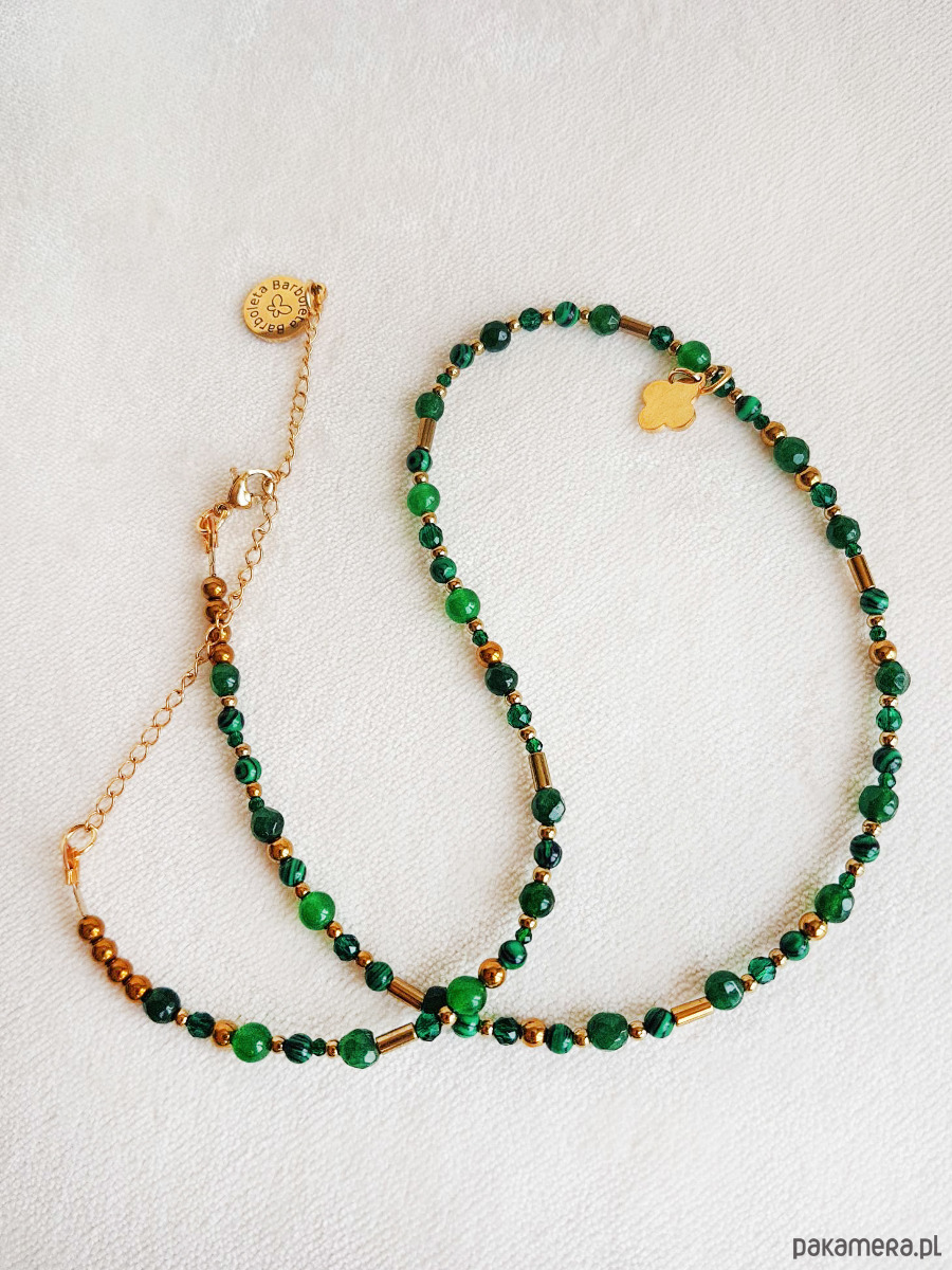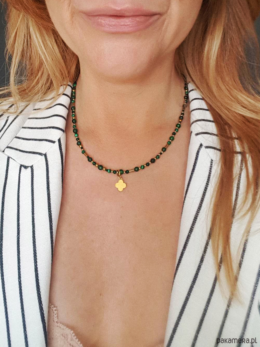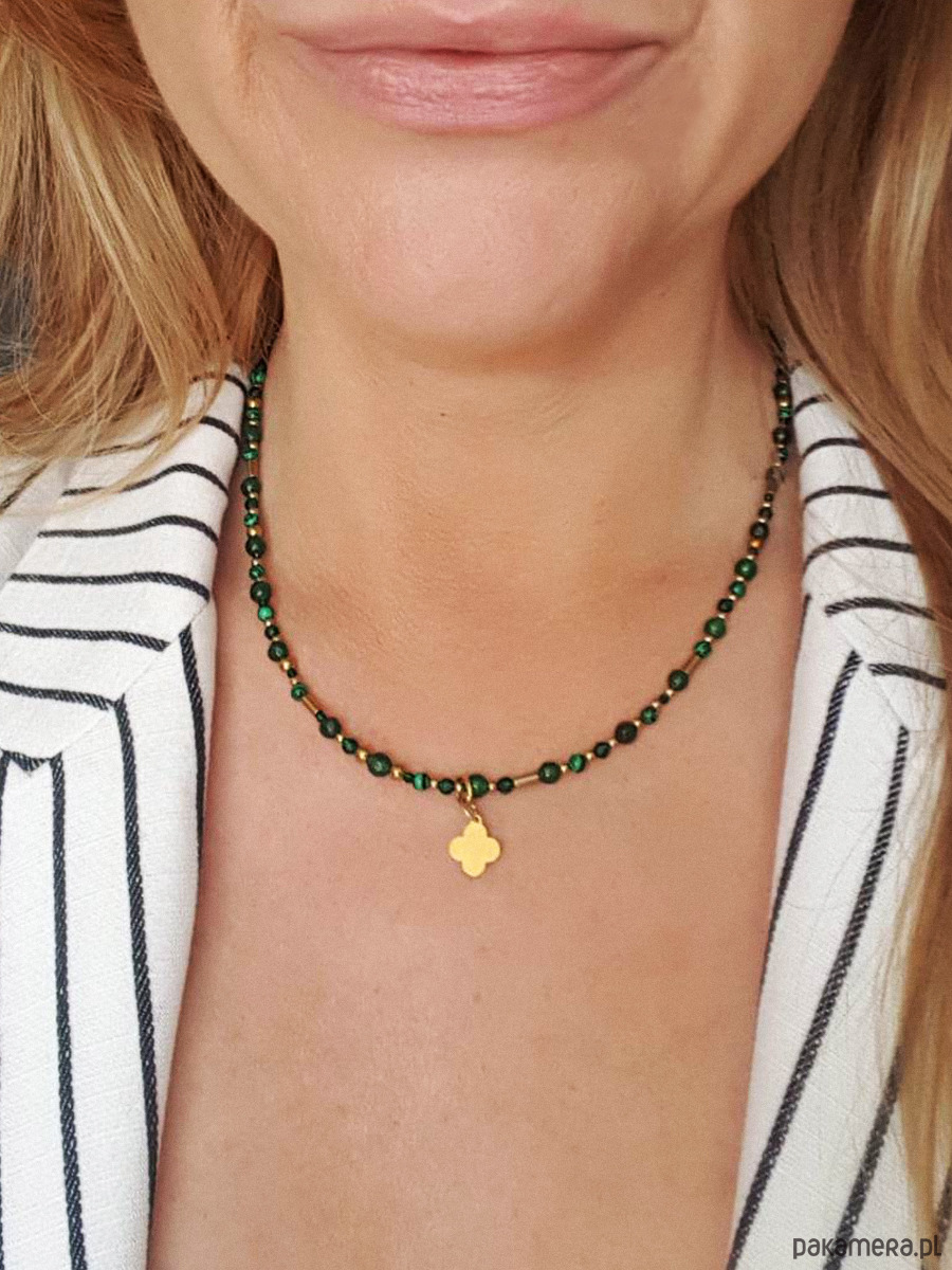 Z dodatkiem malachitów oraz z uroczą zawieszką koniczynką.