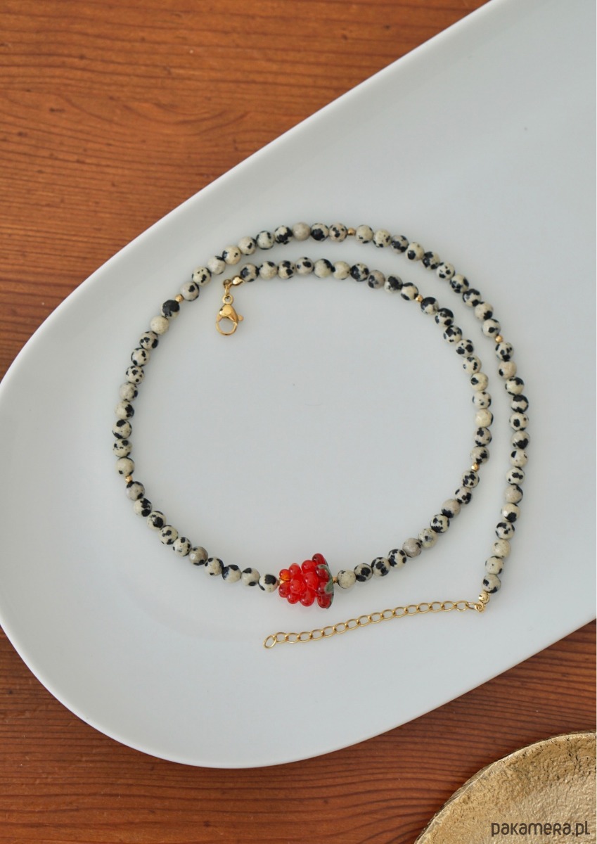 Naszyjnik z maliną i jaspisem dalmatyńskim