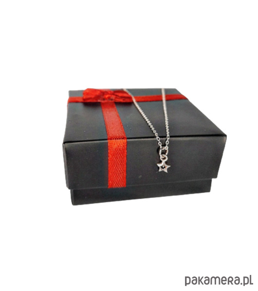 Modny ręcznie wykonany naszyjnik łańcuszek 40cm i malutka gwiazdka z czarnym kamyczkiem.