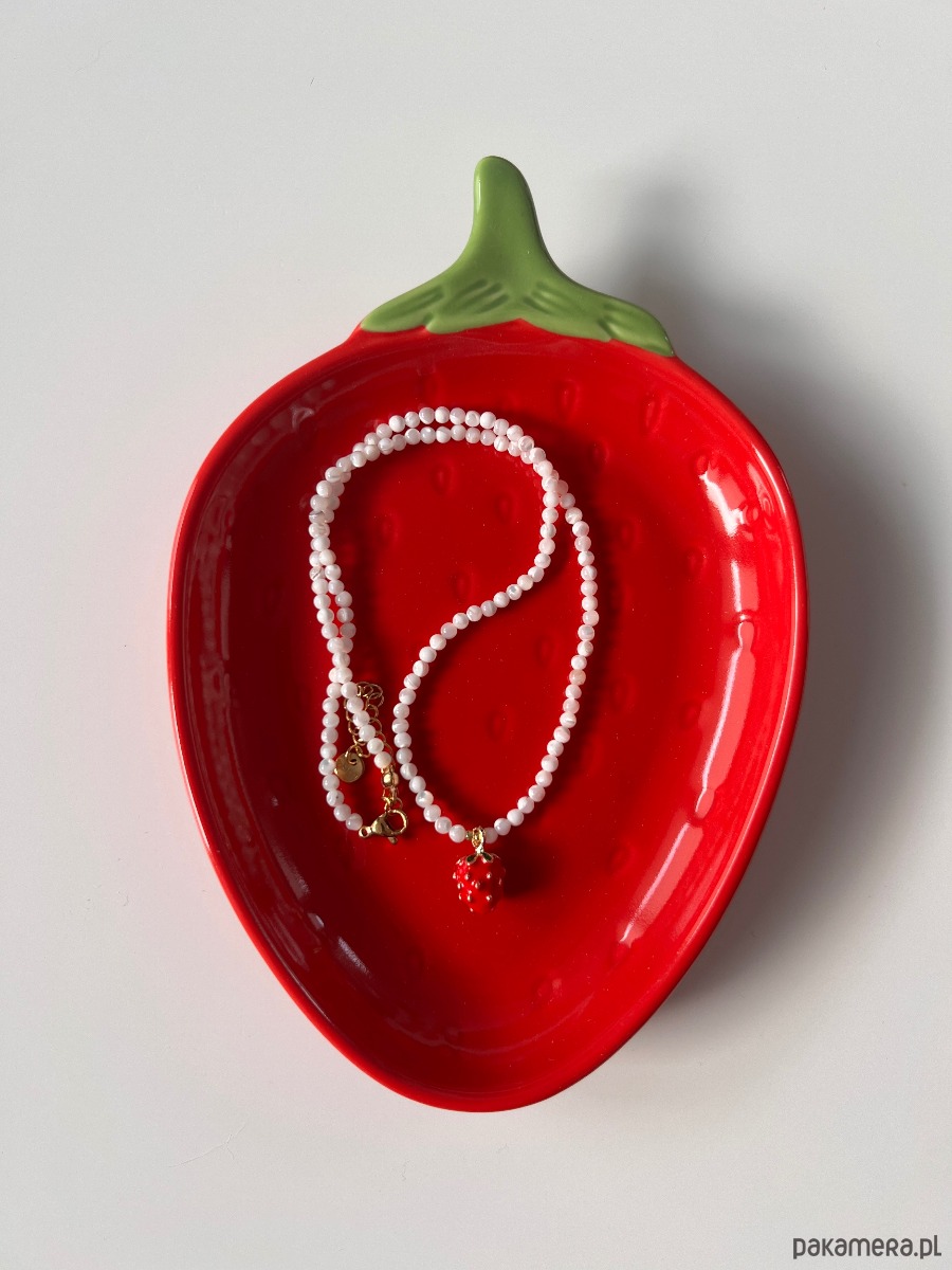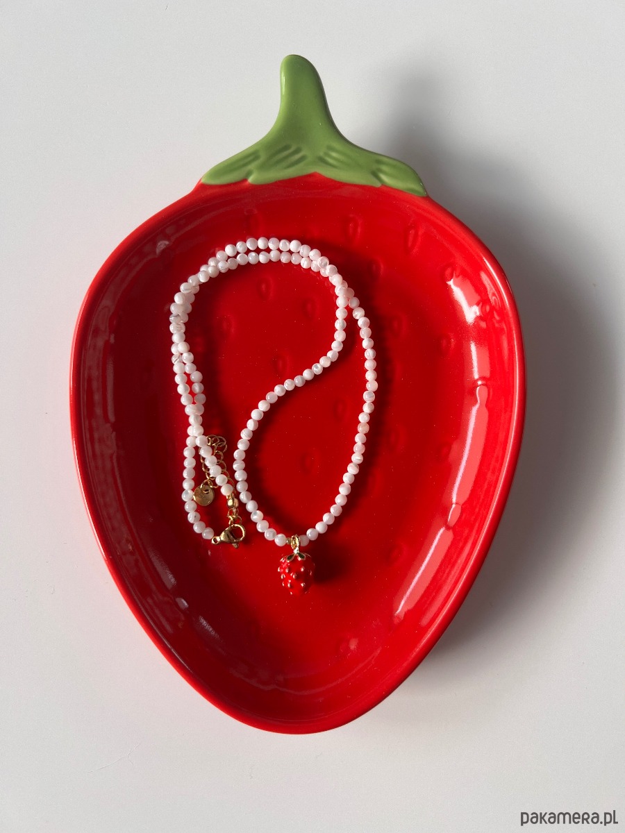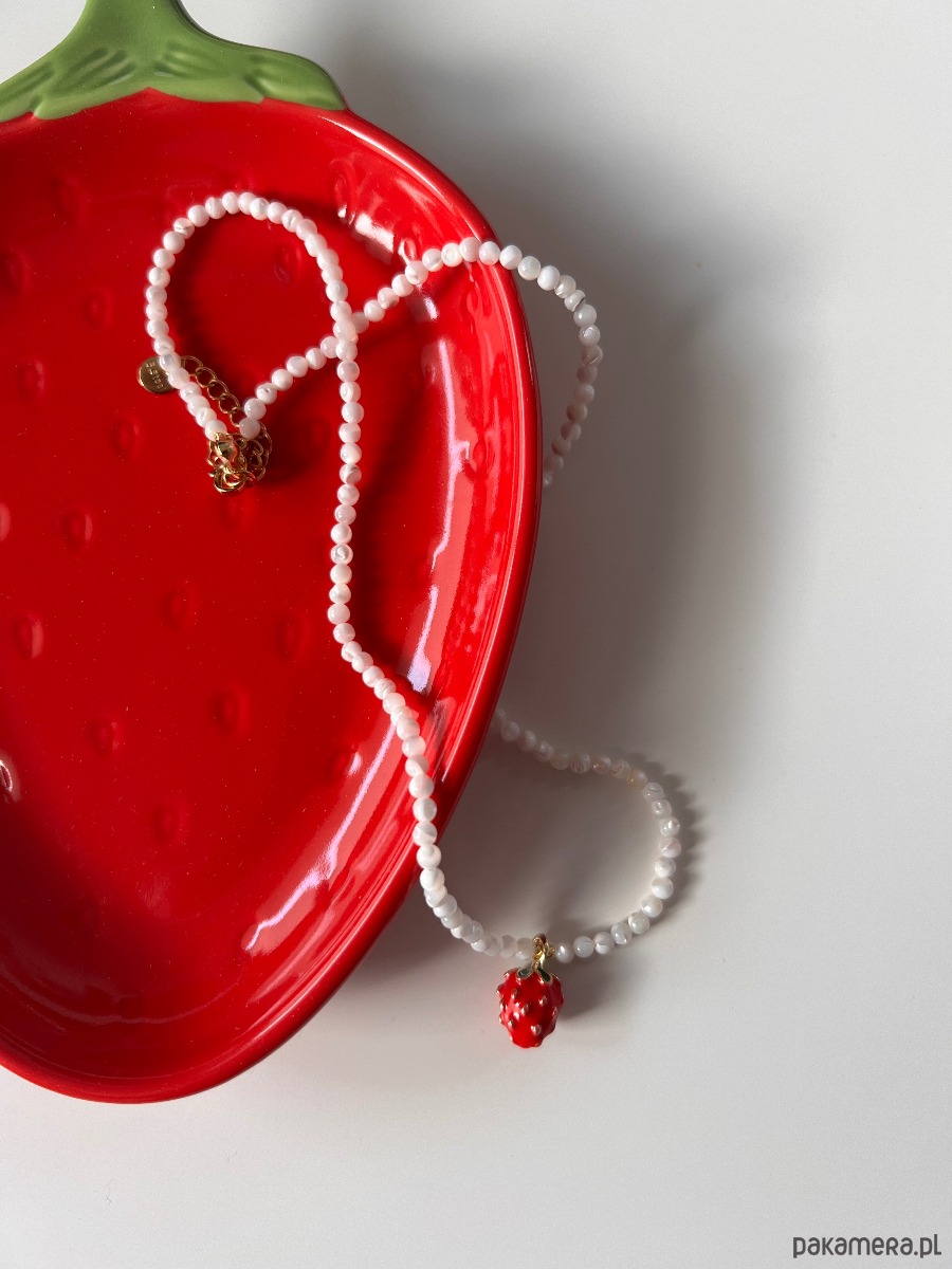 Ręcznie robiony naszyjnik z masy perłowej z truskawką.