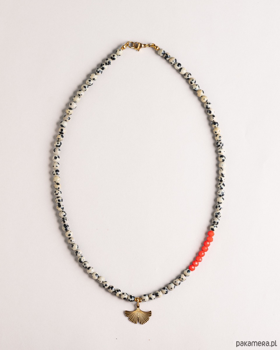 Naszyjnik z miłorzębem z kamieni Jaspis dalmatyński Orange