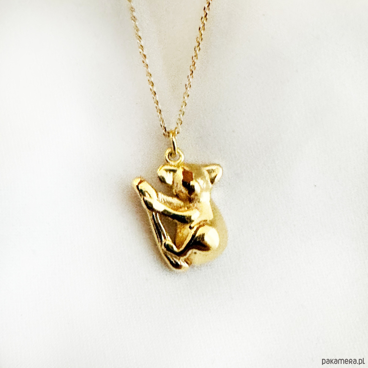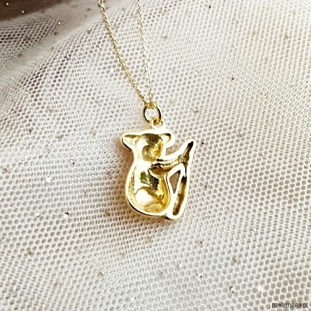 Naszyjnik z pięknym elementem w kształcie misia koali. Wykonany ze srebra próby 925 złocona 24 k złotem.