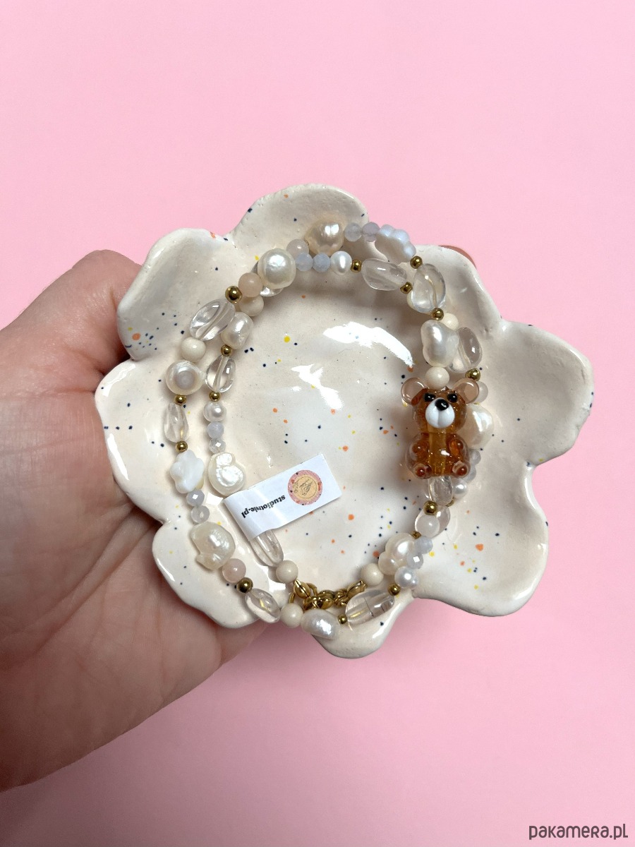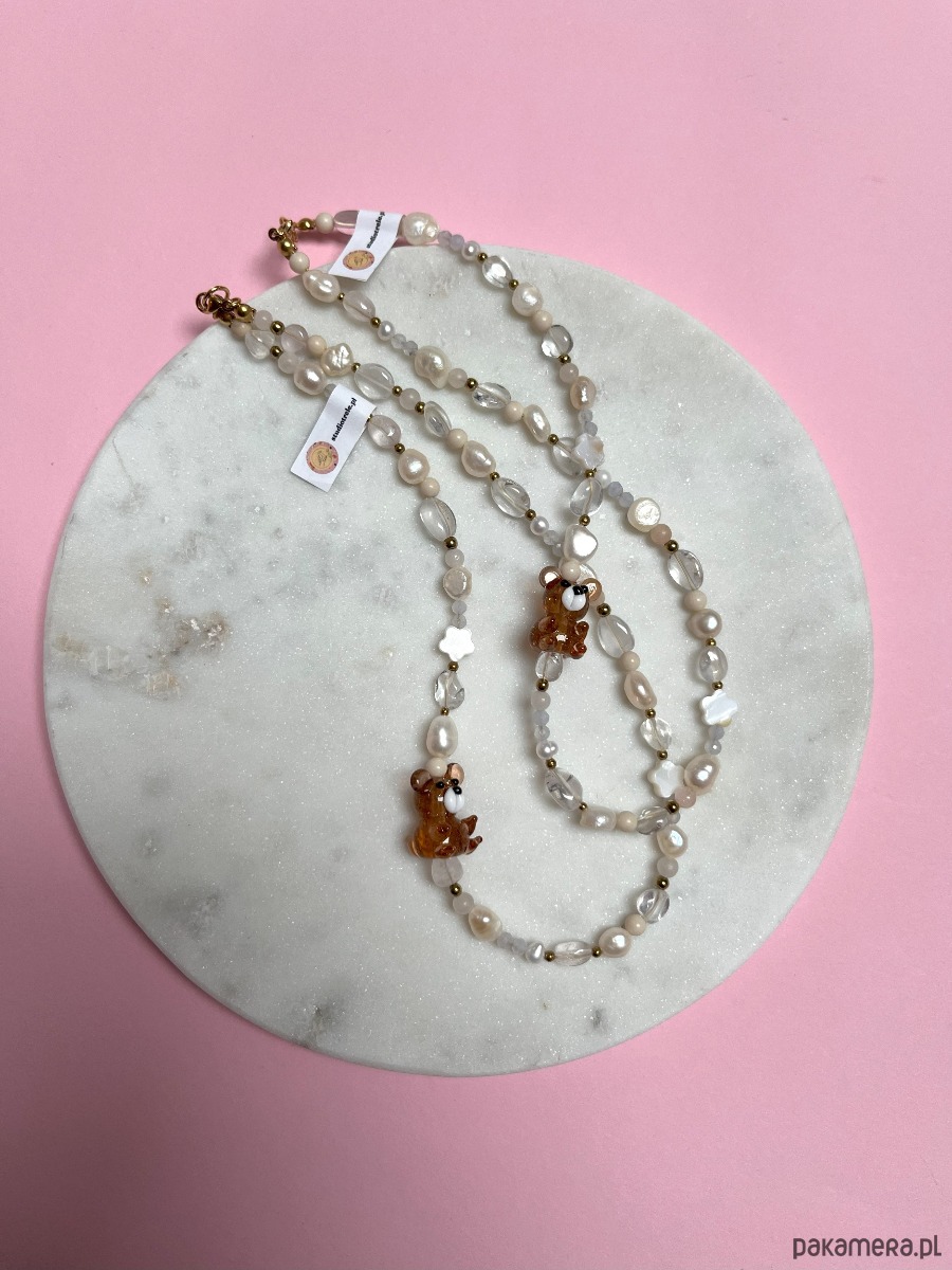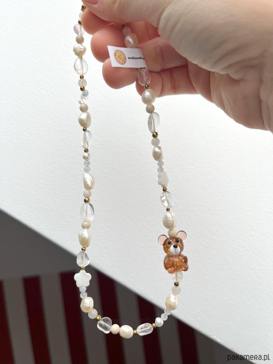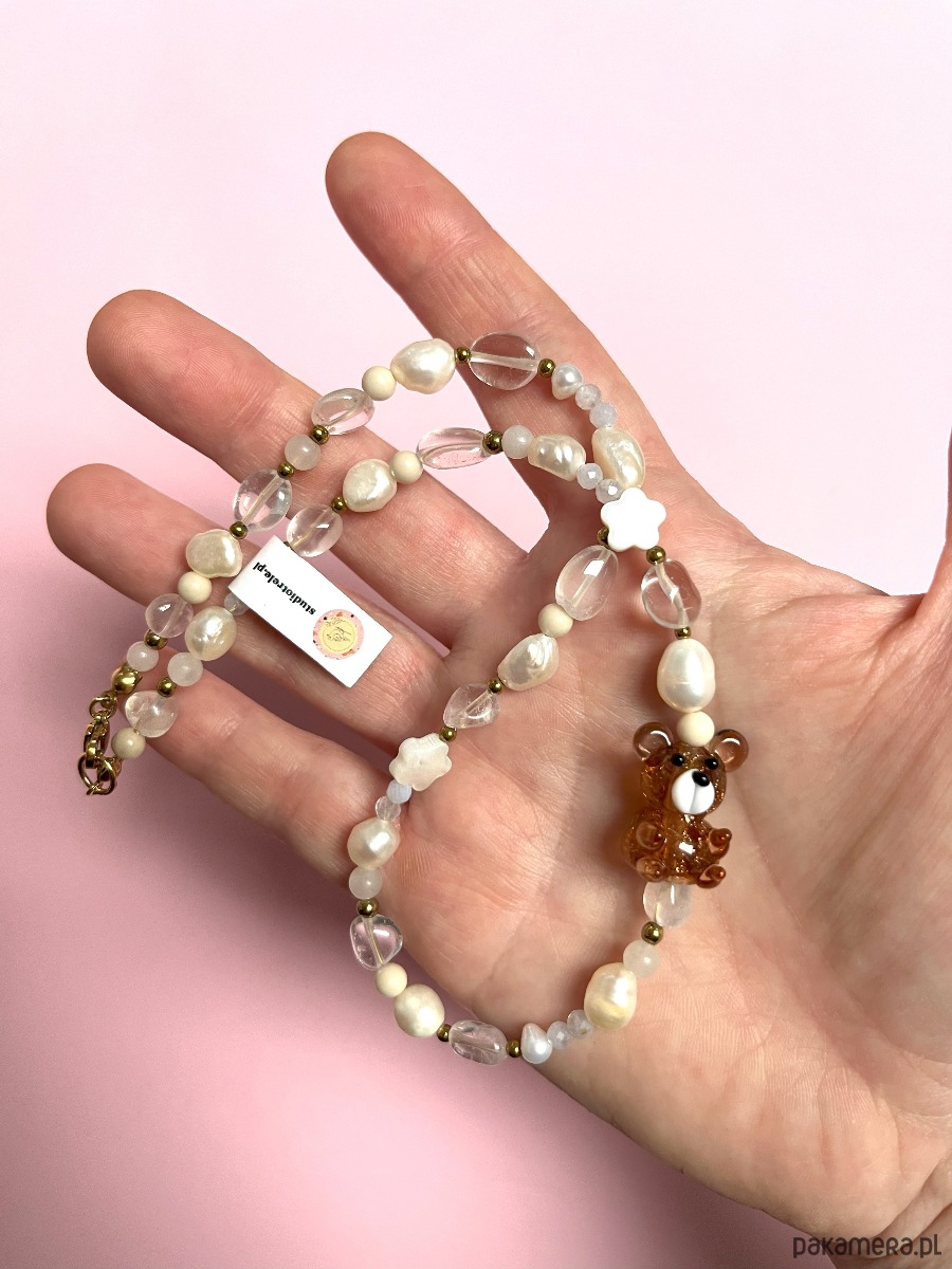 Delikatny naszyjnik z kamieni ze szklanym misiem