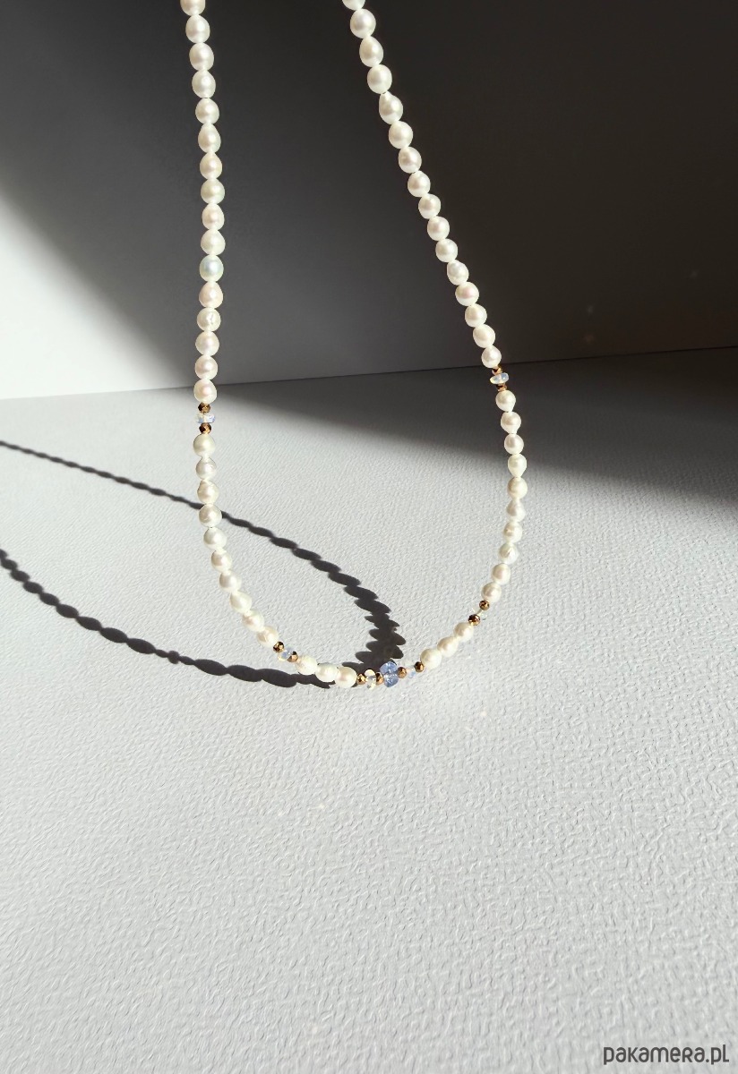 Naszyjnik z perłami, opalem etiopskim i tanzanitem.