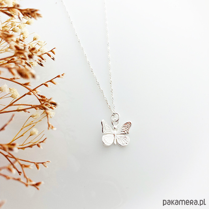Unikatowy naszyjnik z pięknym elementem w kształcie motyla . Unikalny design, piękne wykonanie. Wykonany ze srebra próby 925 ( dostępny winnej ofercie złocony 24 k złotem)